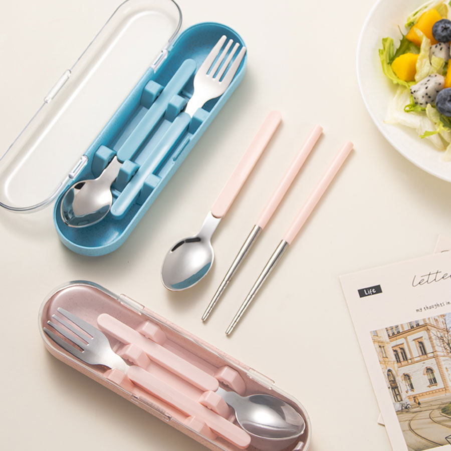 麥稈便攜不銹鋼餐具叉勺/筷