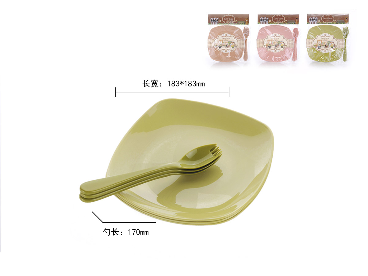 得力熊歐式大號簡約正方餐盤(4pcs)( 配4pcs叉匙)