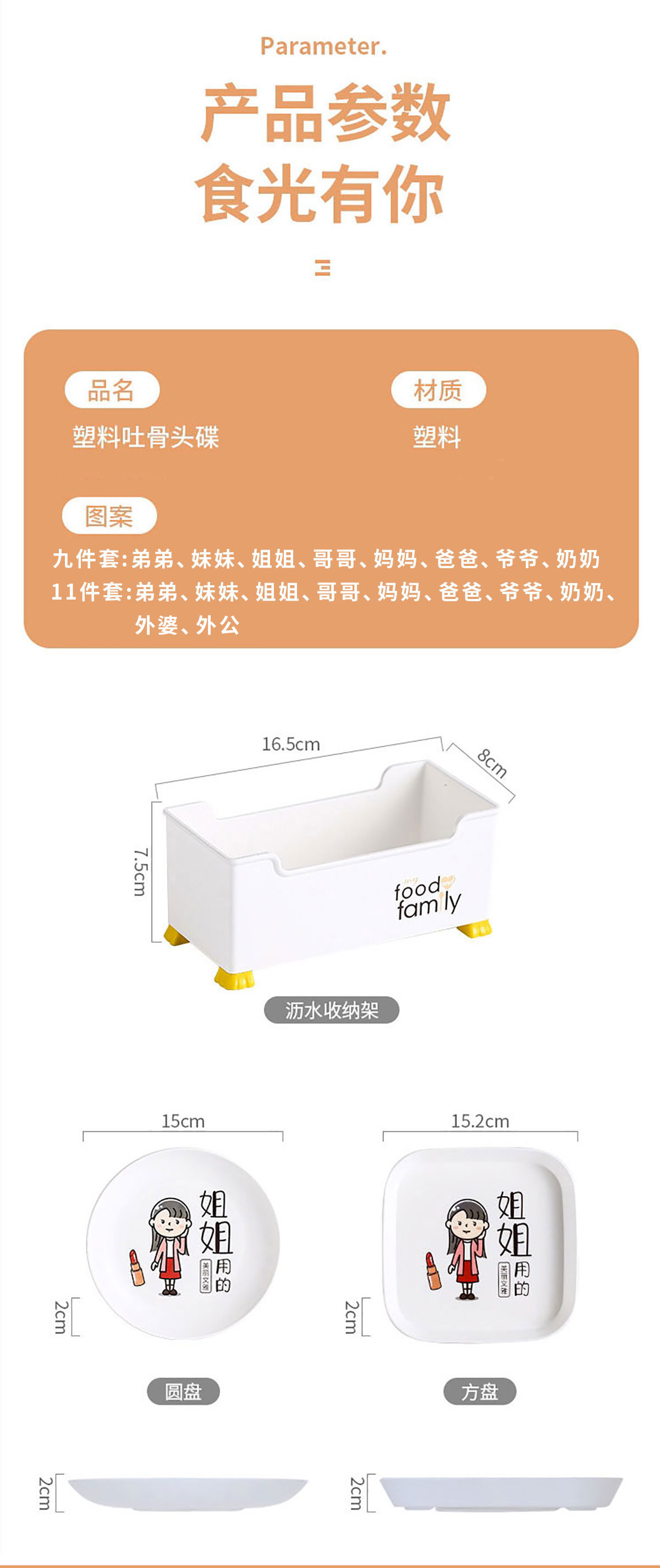 九件套/11件套圓形/方形多用碟(歡樂家庭)