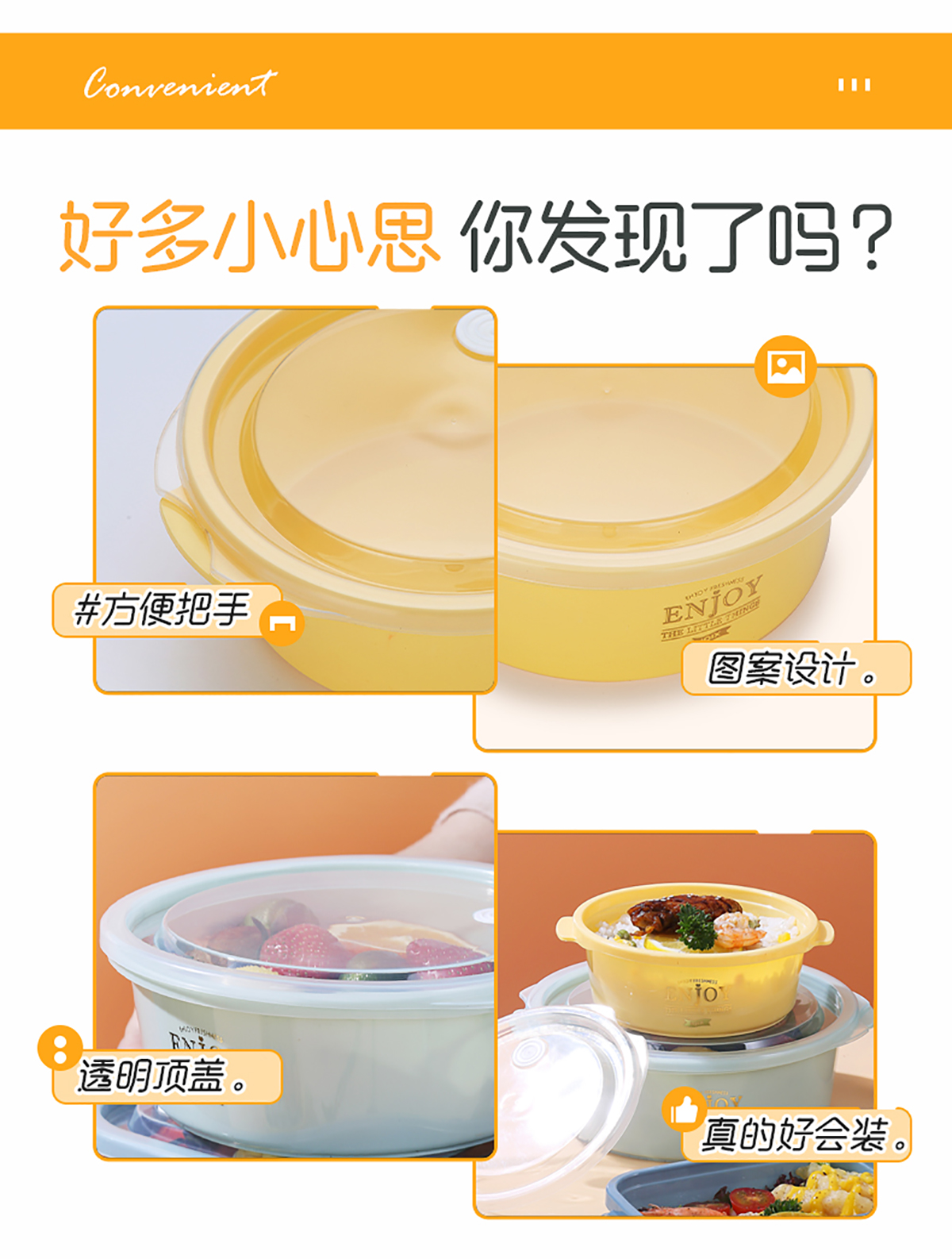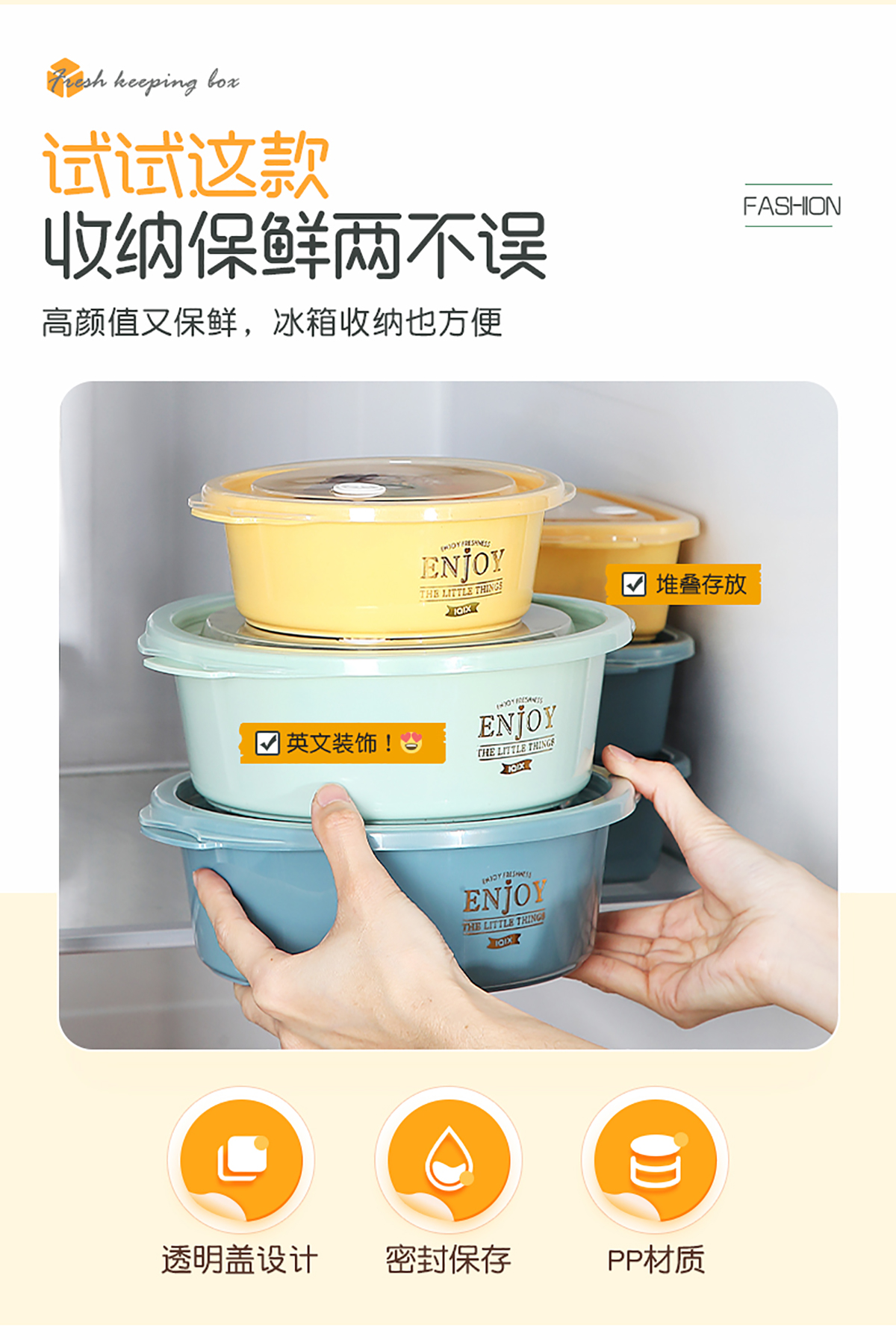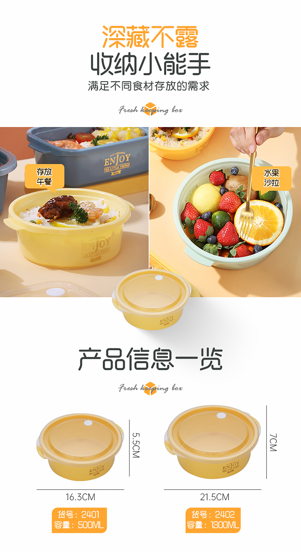 圓形輕便微波保鮮盒(小/大)(4個(gè)莊/3個(gè)莊)500ml/1300ml 2022新色