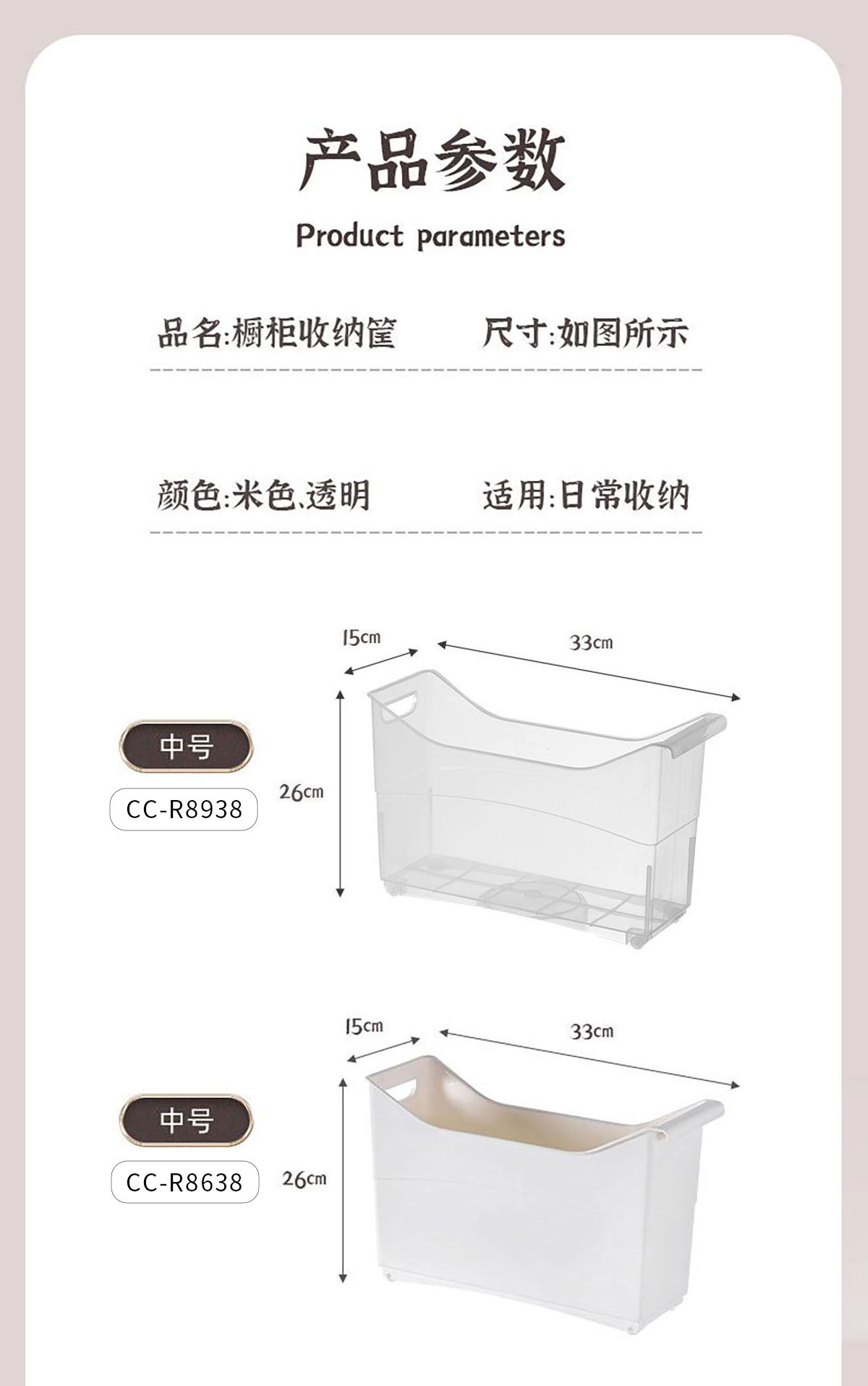 櫥柜收納筐(透明/實(shí)色 小號(hào)/大號(hào))