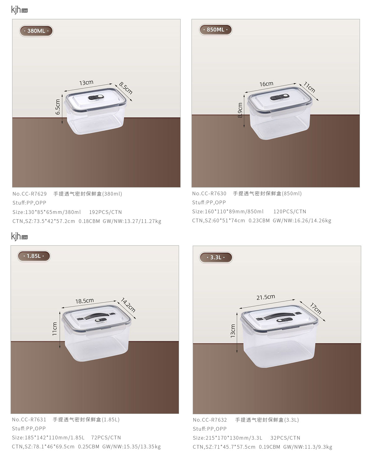手提透氣密封保鮮盒(380ml/850ml/1.85L/3.3L/4.55L/7.20L)