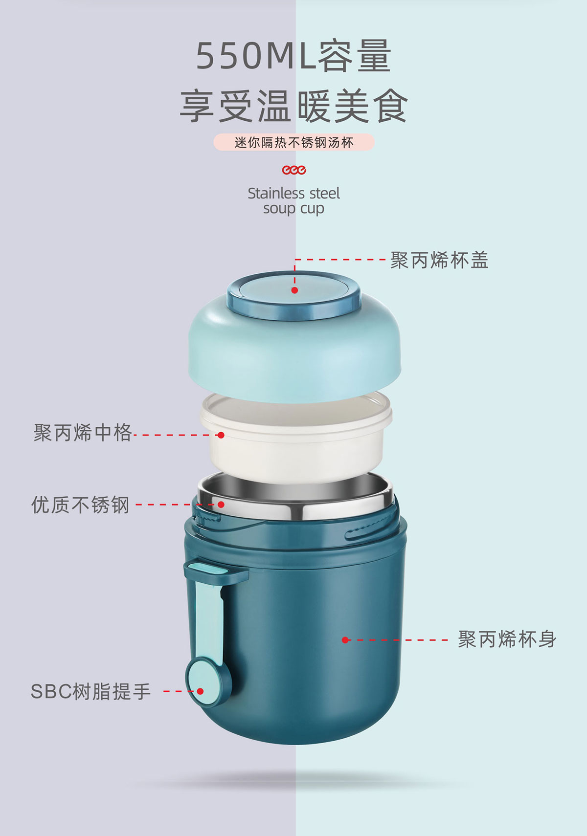 迷你隔熱不銹鋼湯杯550ml