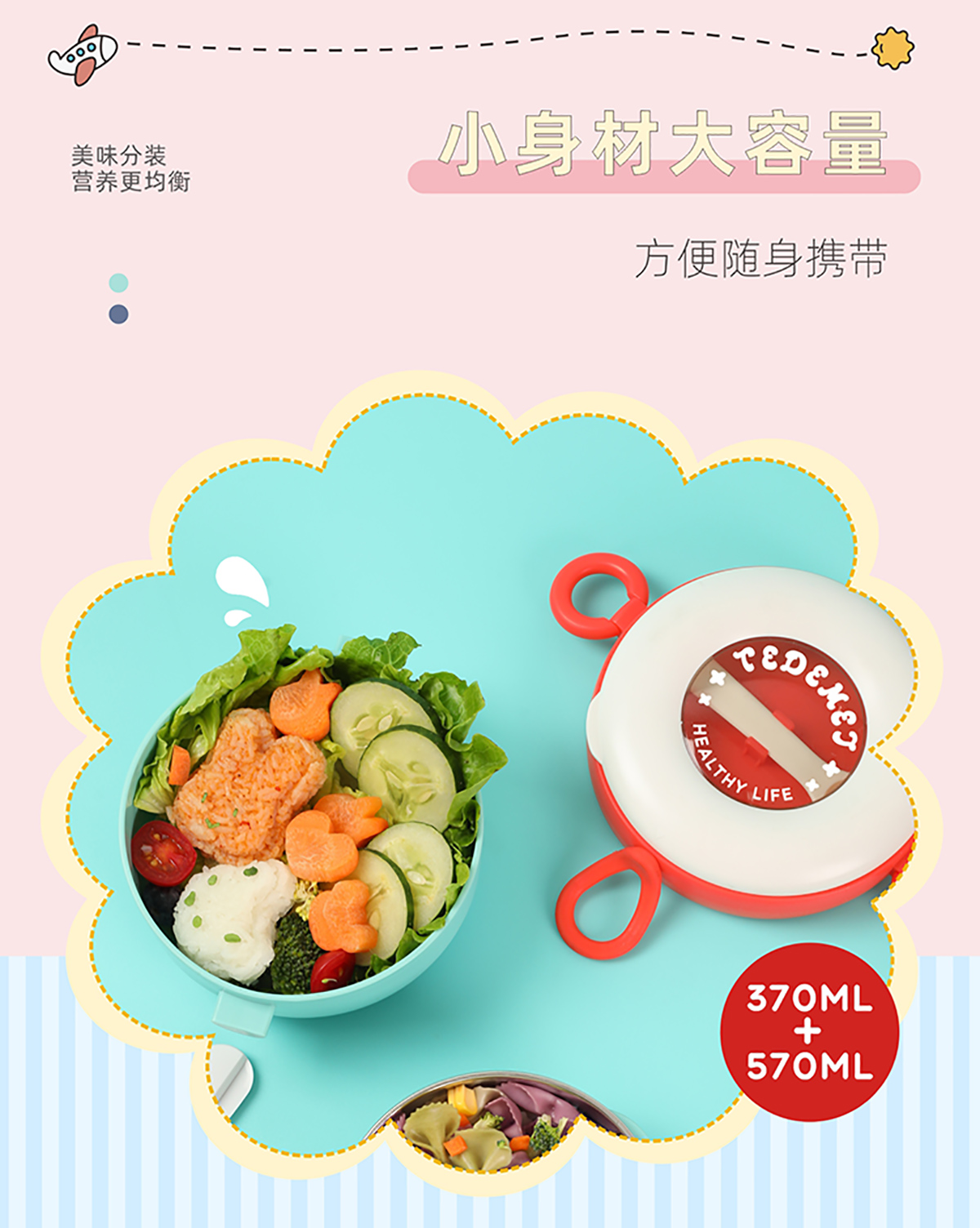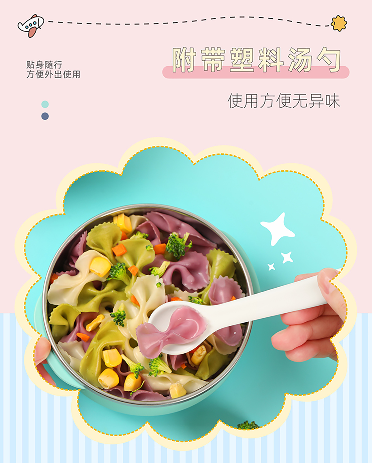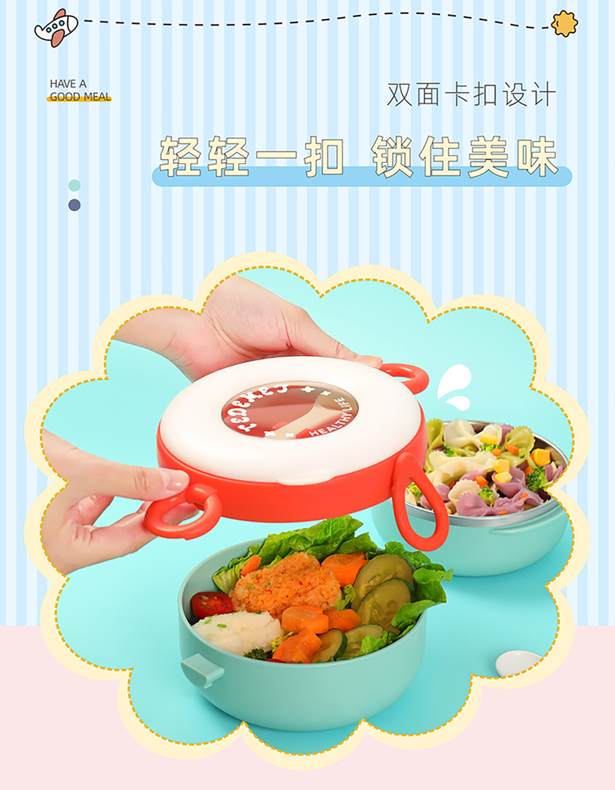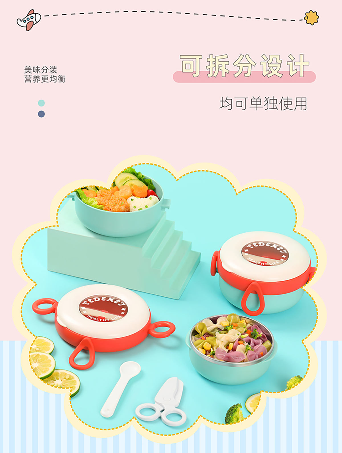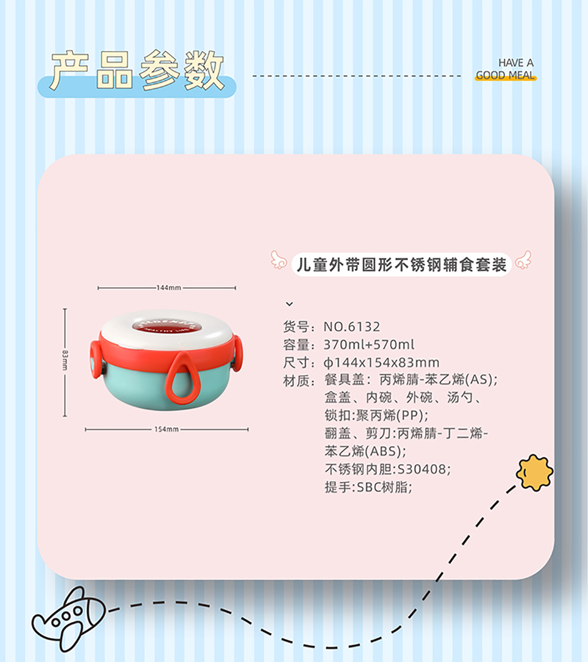 兒童外帶圓形不銹鋼輔食套裝