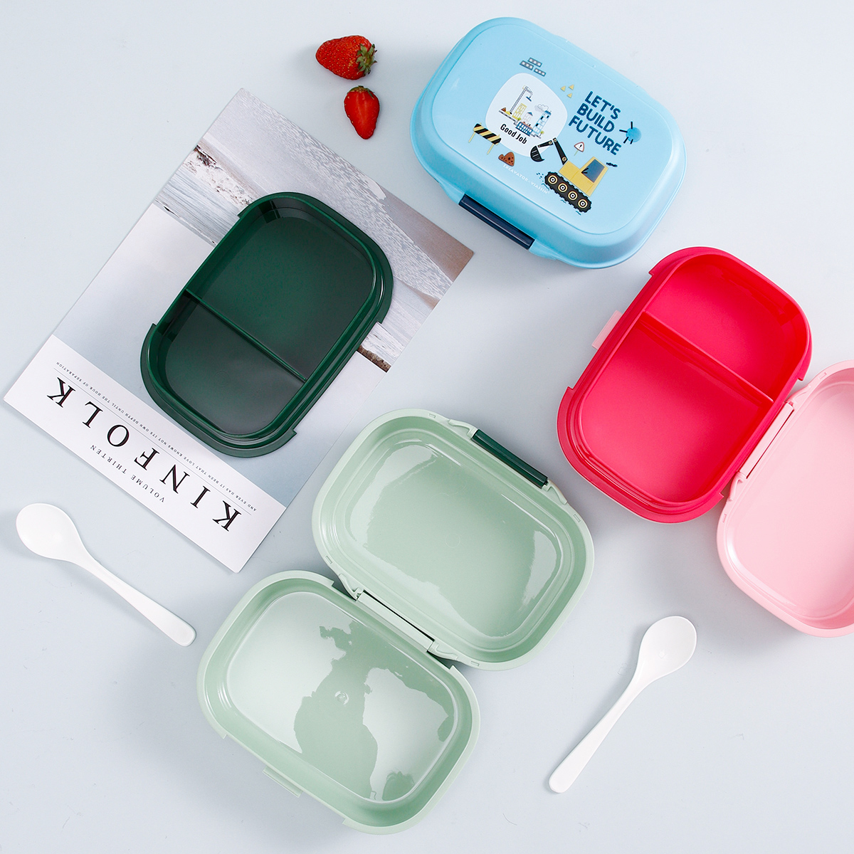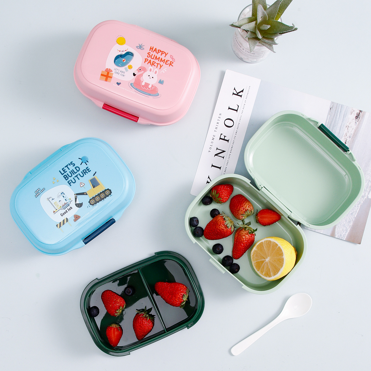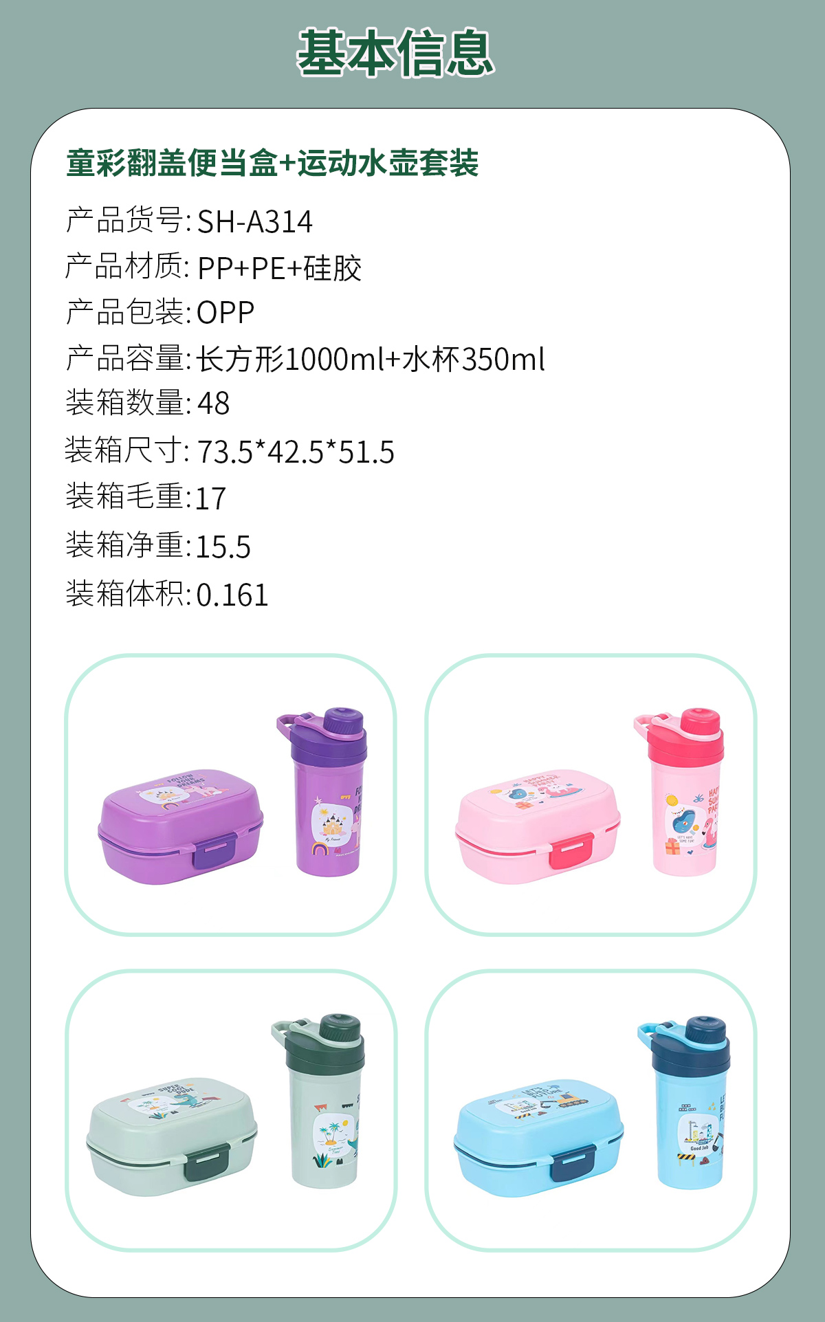 童彩翻蓋便當(dāng)盒+運(yùn)動(dòng)水壺套裝(長(zhǎng)方形/正方形1000ml+水杯350ml)