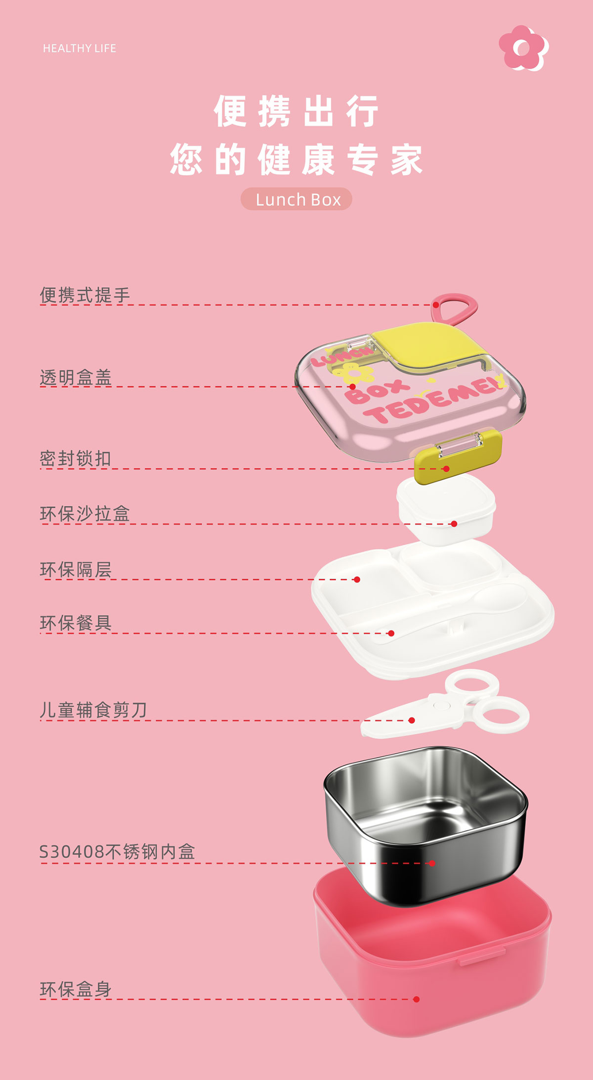 Size: 145*131*80mm/外盒:750ml/內(nèi)盒:600ml/沙拉盒:45ml