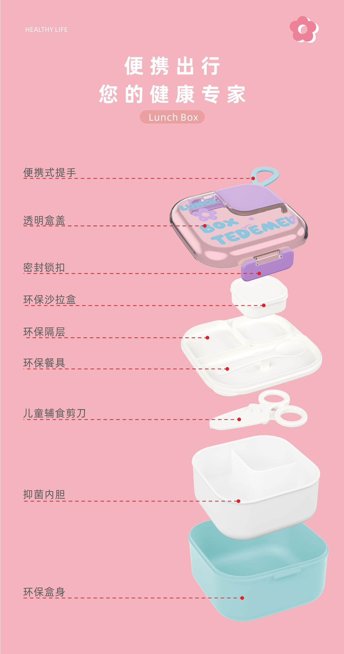 Size: 145*131*80mm/外盒:750ml/內(nèi)盒:600ml/沙拉盒:45ml
