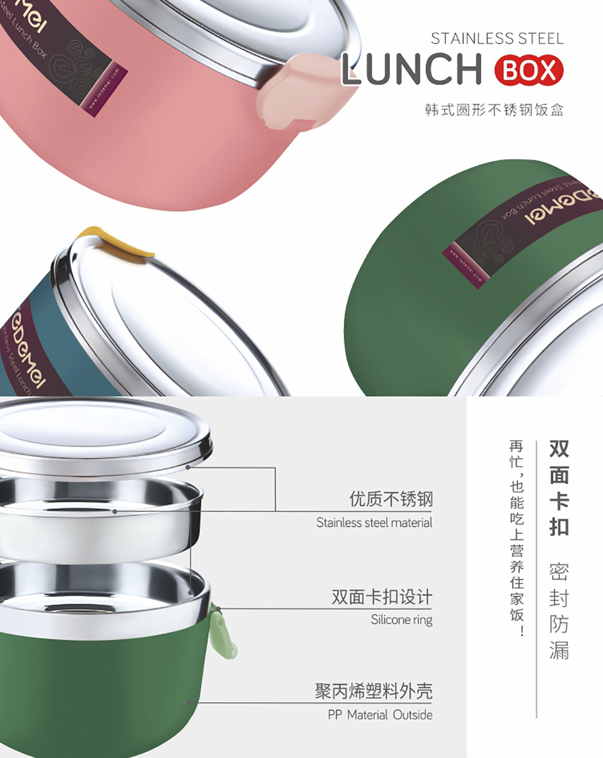 韓式圓形不銹鋼飯盒