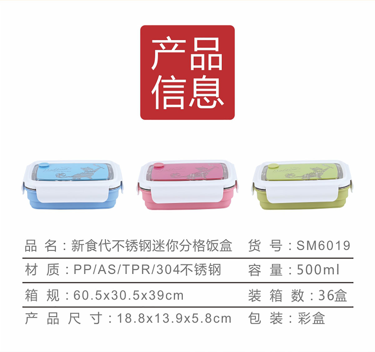 新食代不銹鋼迷你分格飯盒(500ML)