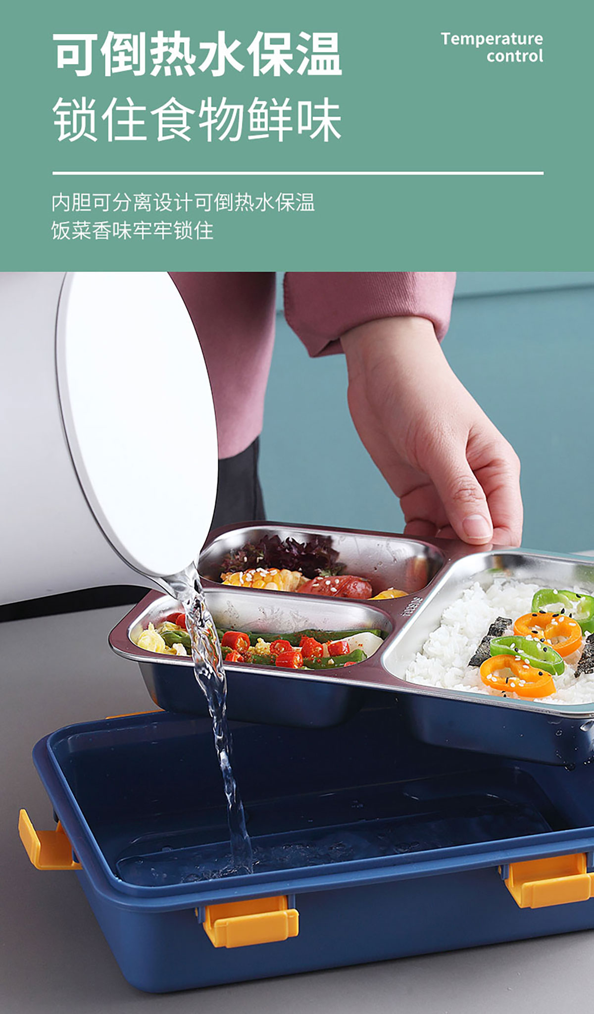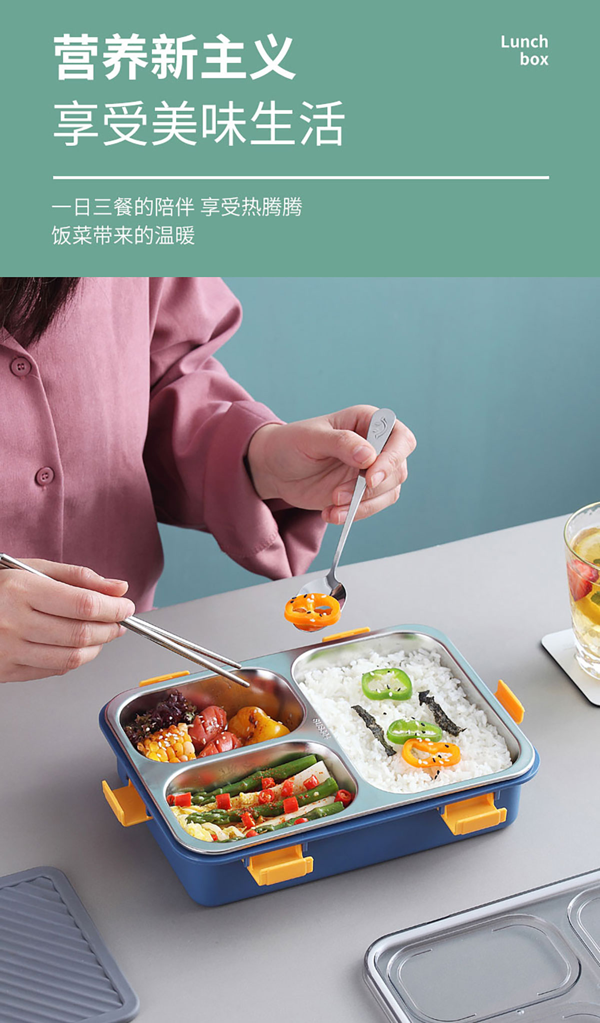 304不銹鋼飯盒中三格/900ml