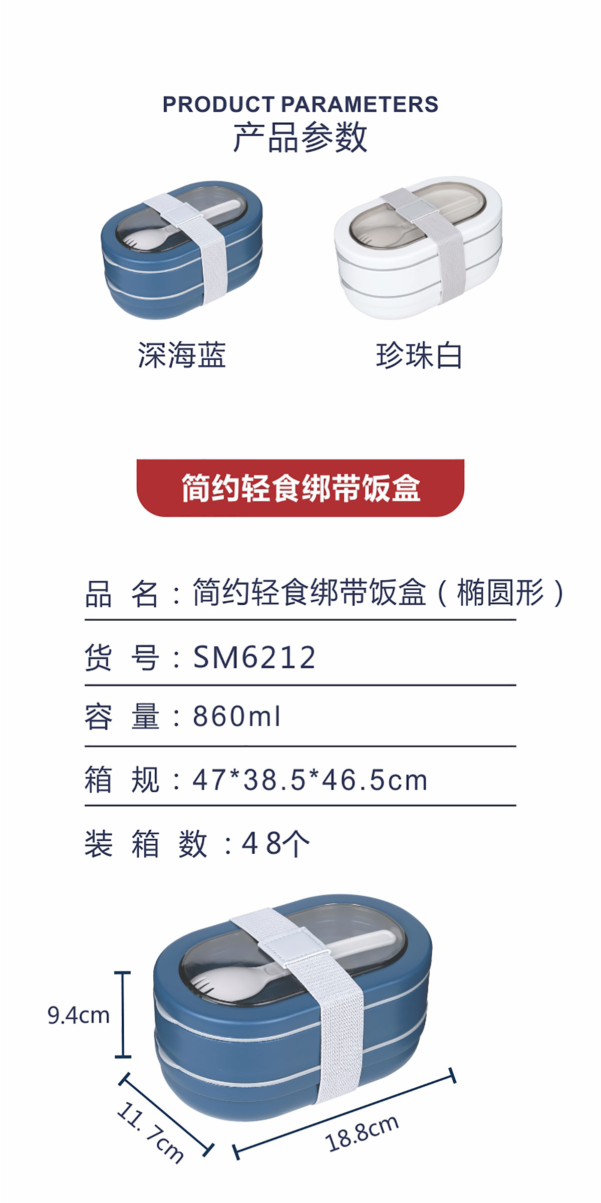 簡約輕食綁帶飯盒 (橢圓形)860ml 22年新色