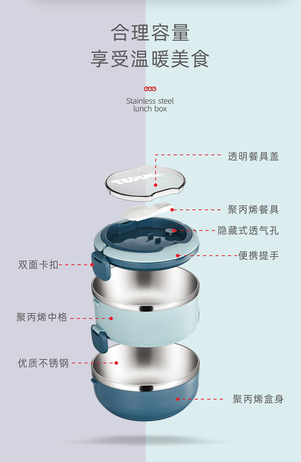 單層700ml/雙層1.4L不銹鋼餐盒