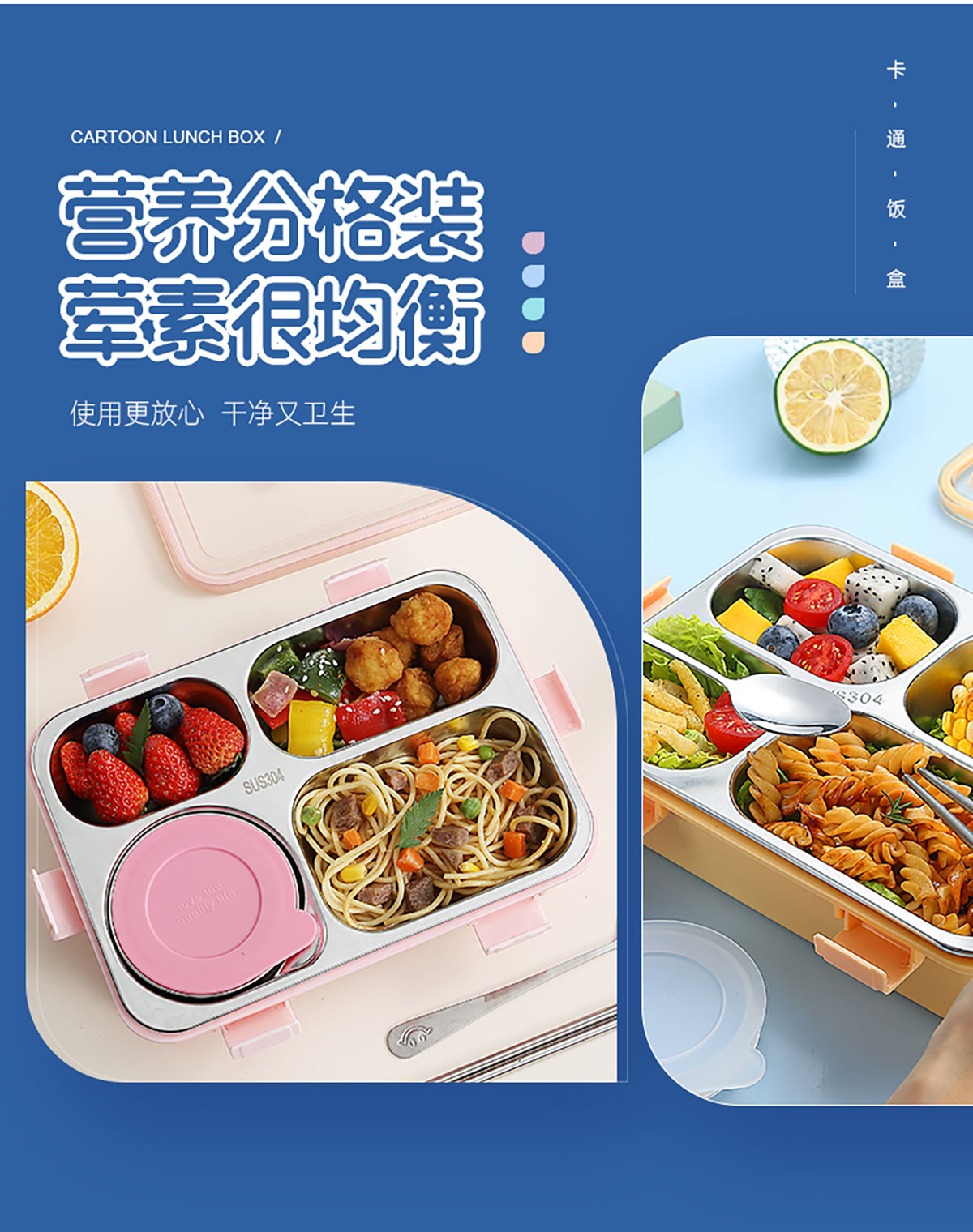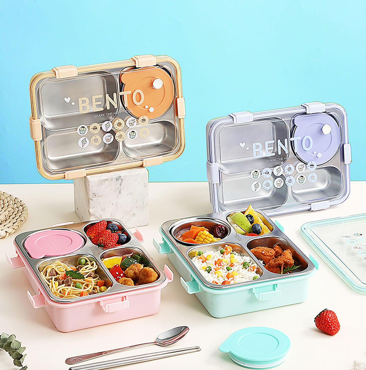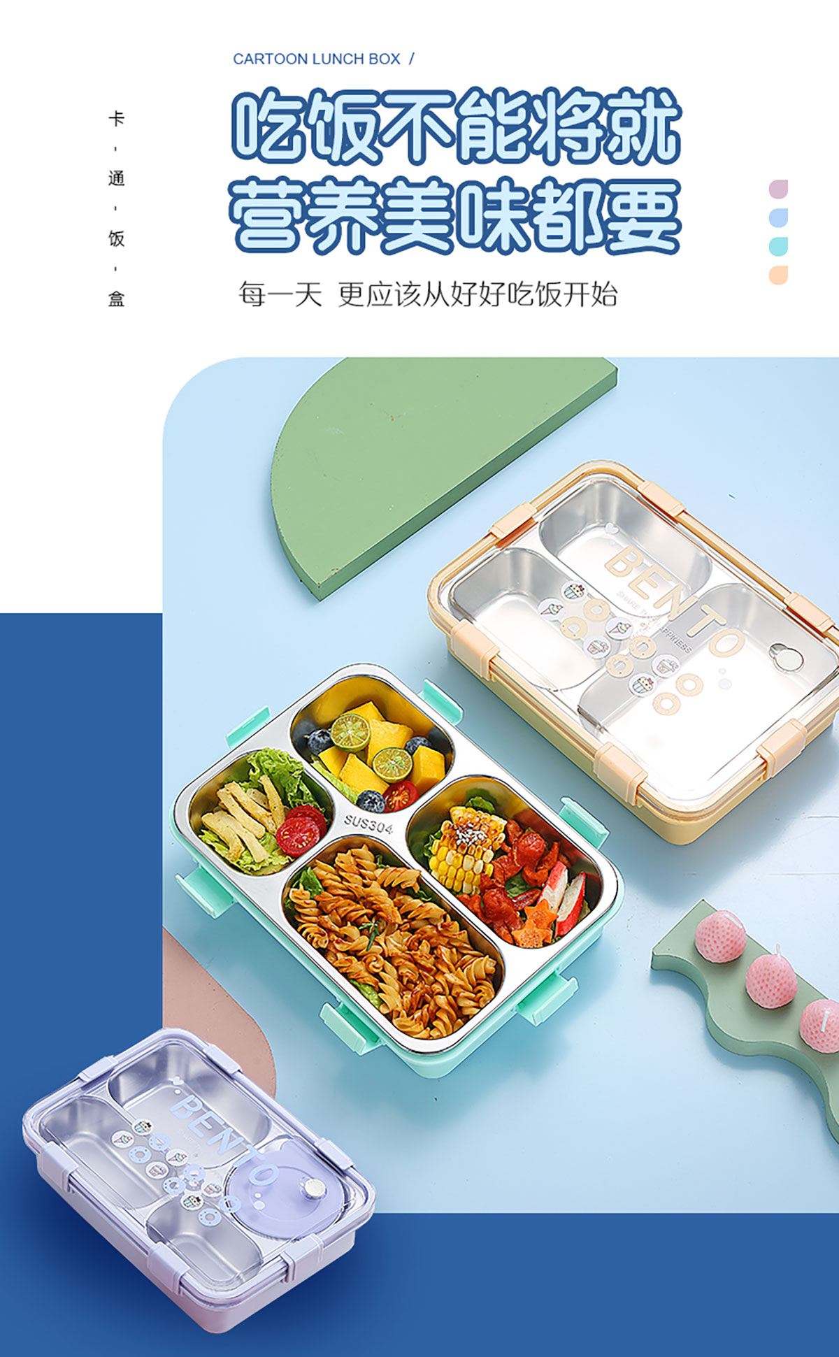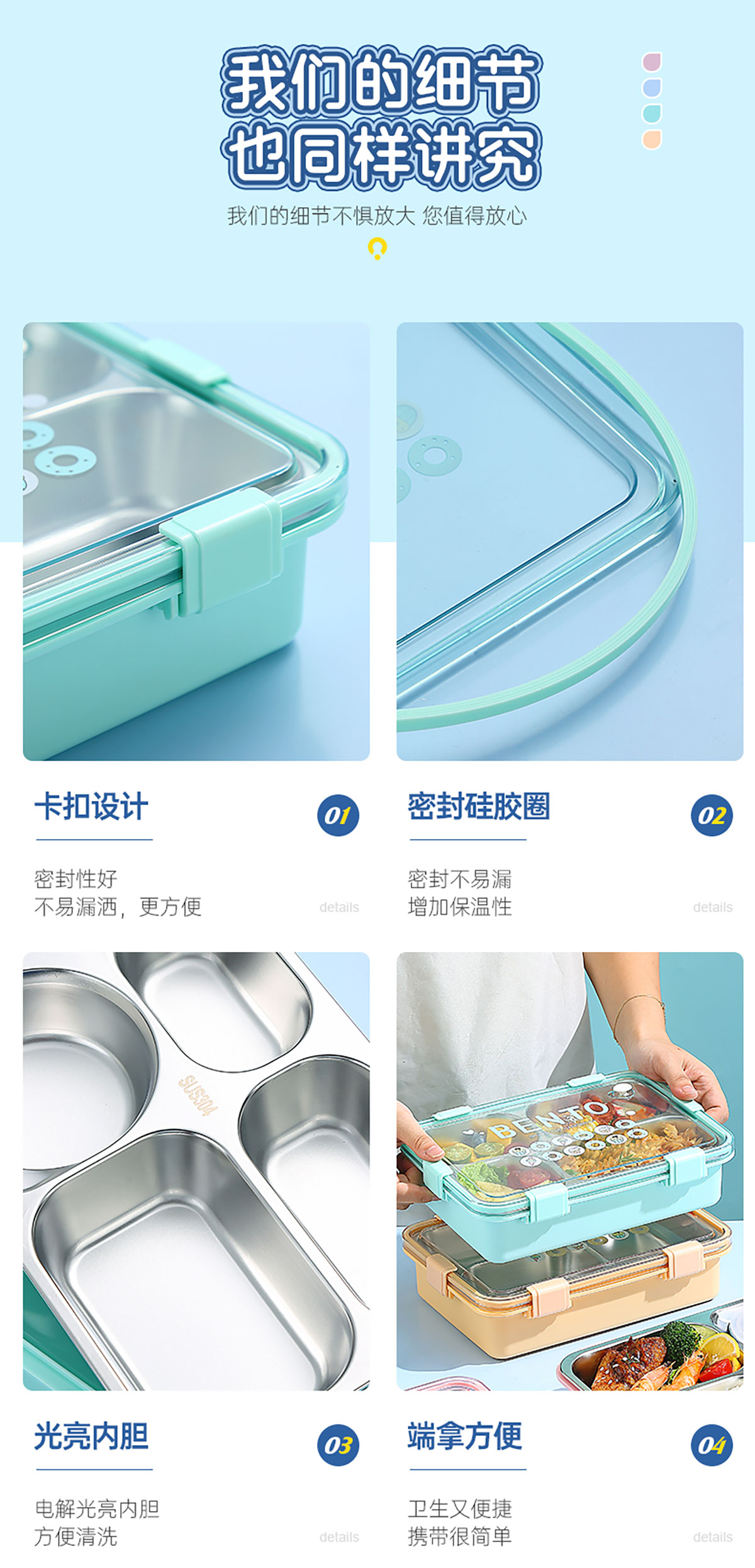 時尚清新304不銹鋼飯盒(三格900ml/四格900ml/四格+碗850ml+150ml)