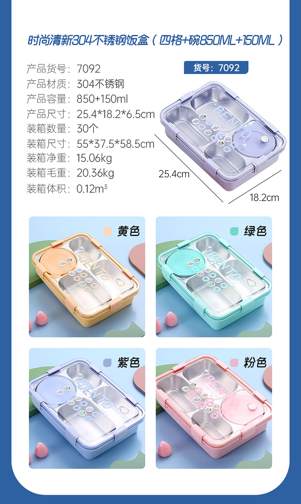 LX-7092(四格+碗850ml+150ml):254*182*65mm