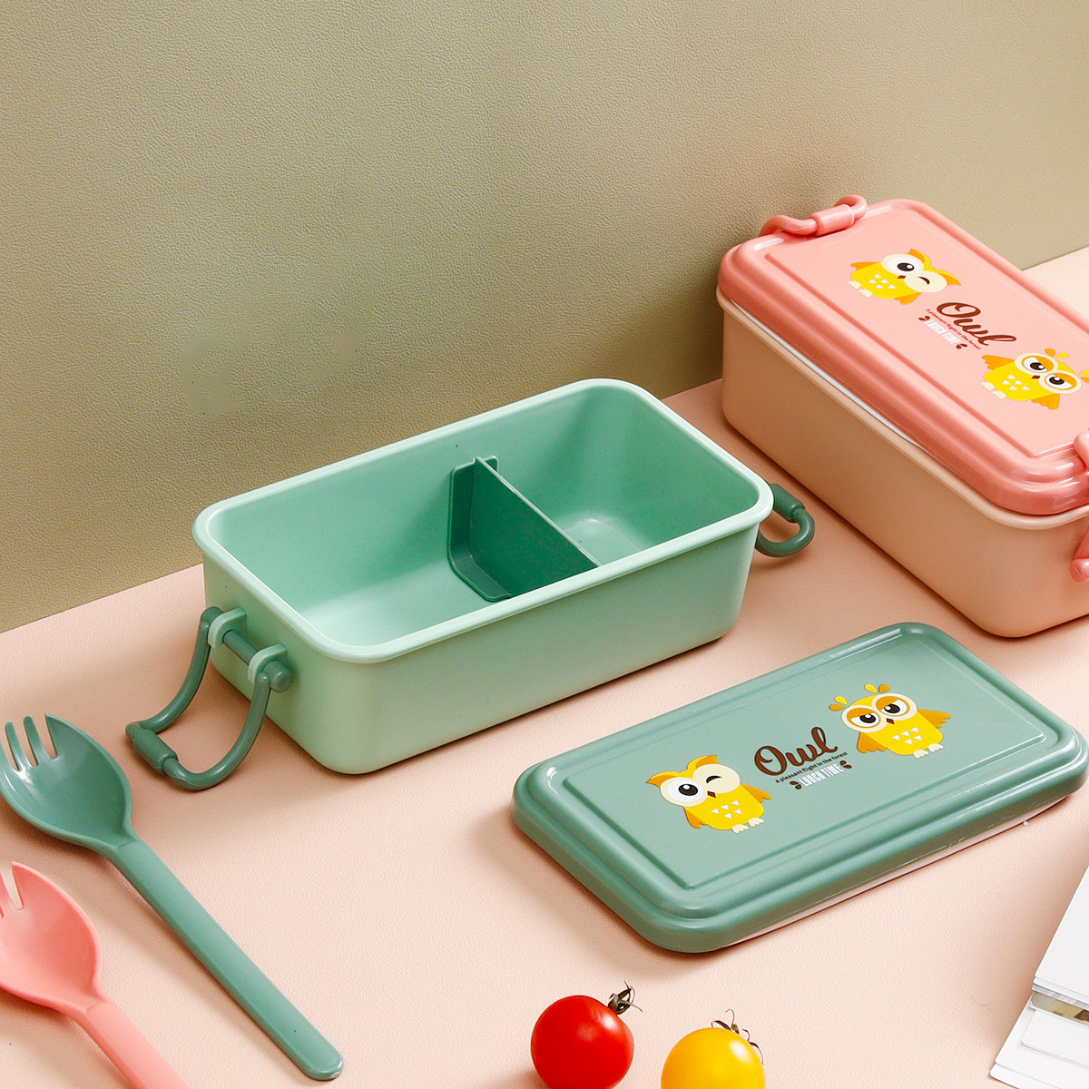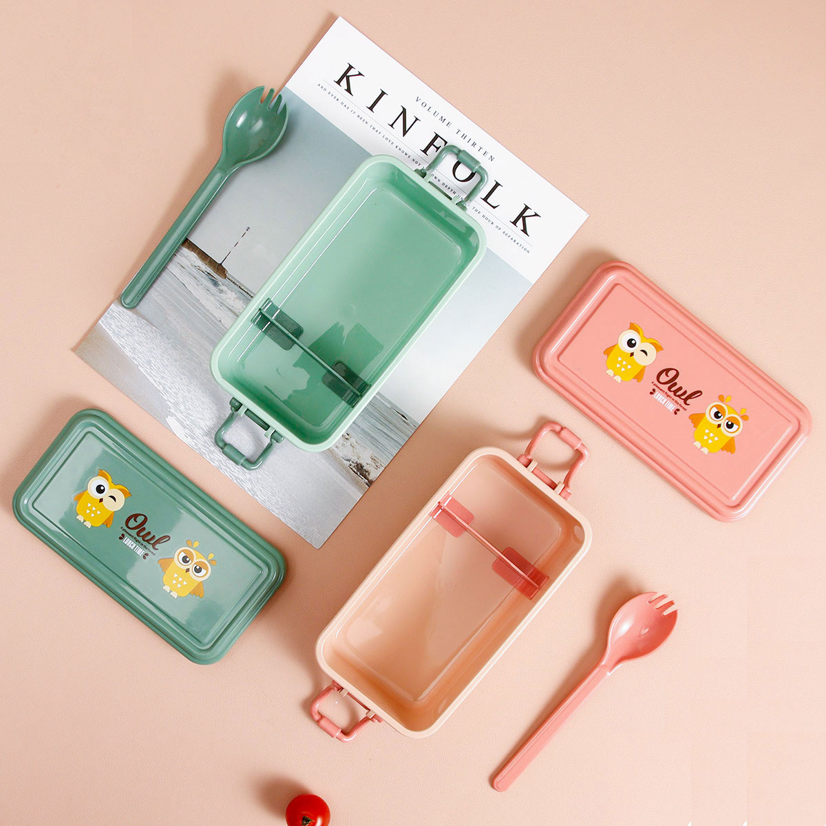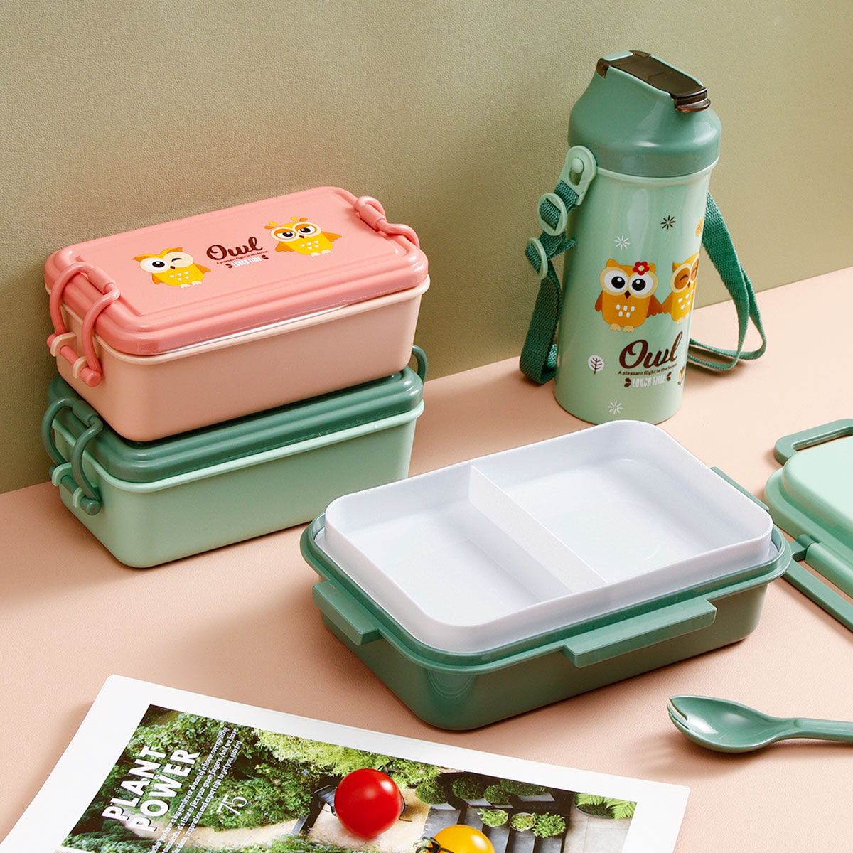 日式便當盒/四扣便當盒+500ml卡通水壺