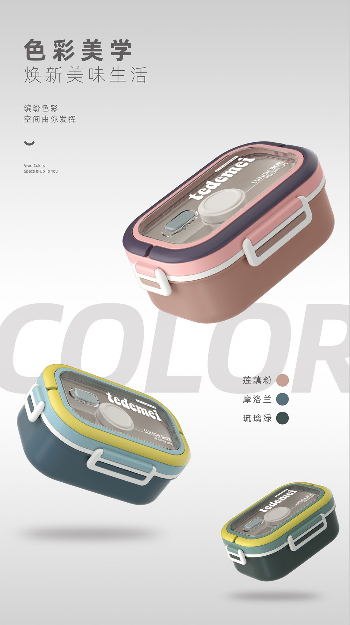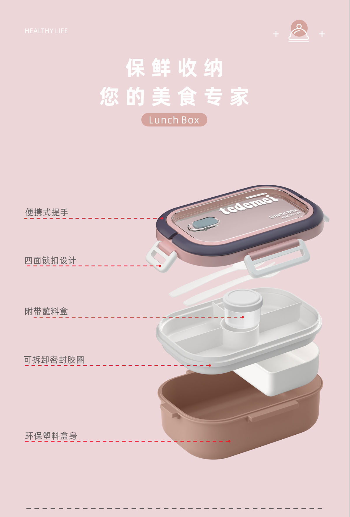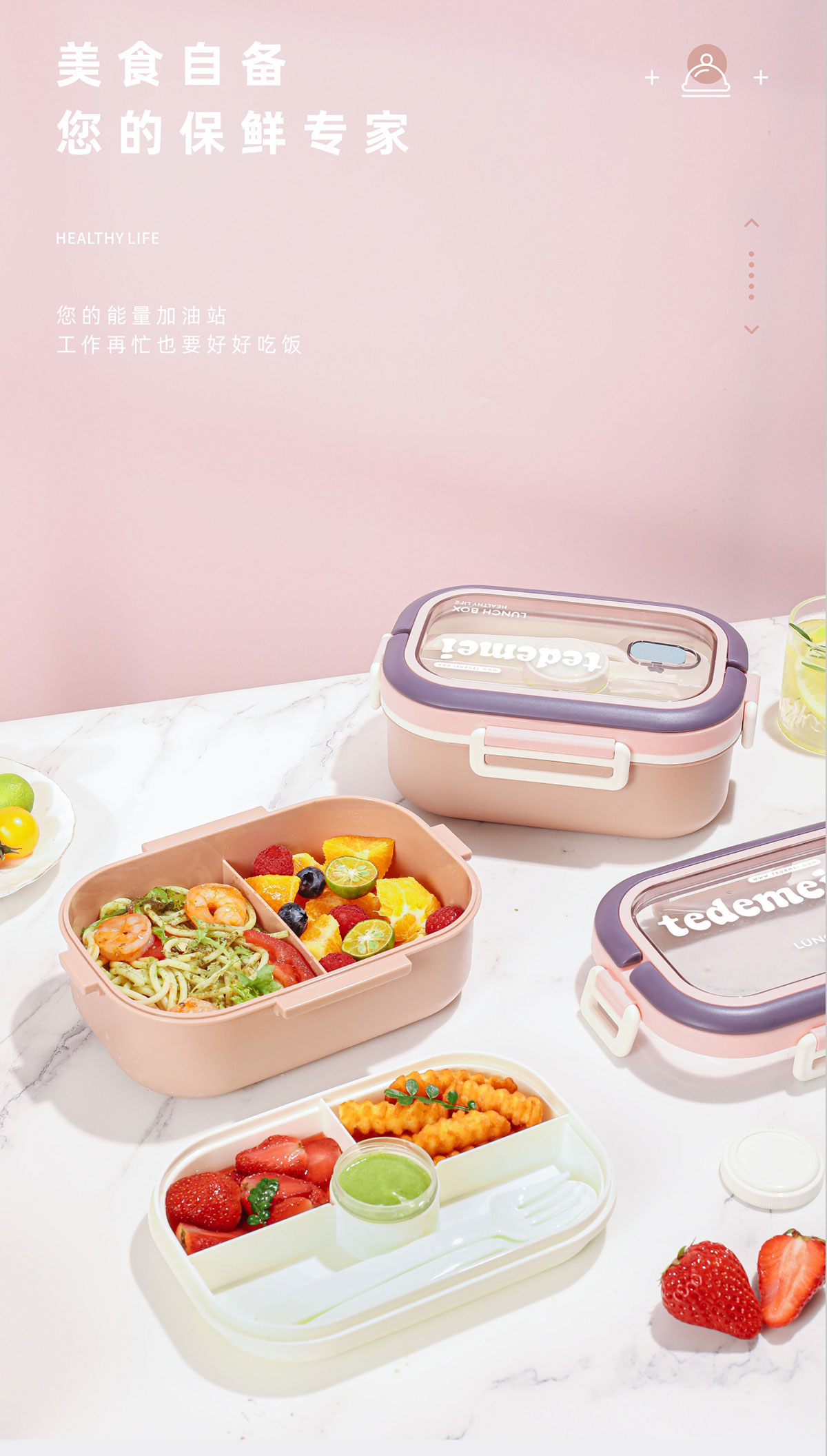 長方形便攜單層飯盒(帶餐具)1.1L+500ml+330ml/1.1L+500ml