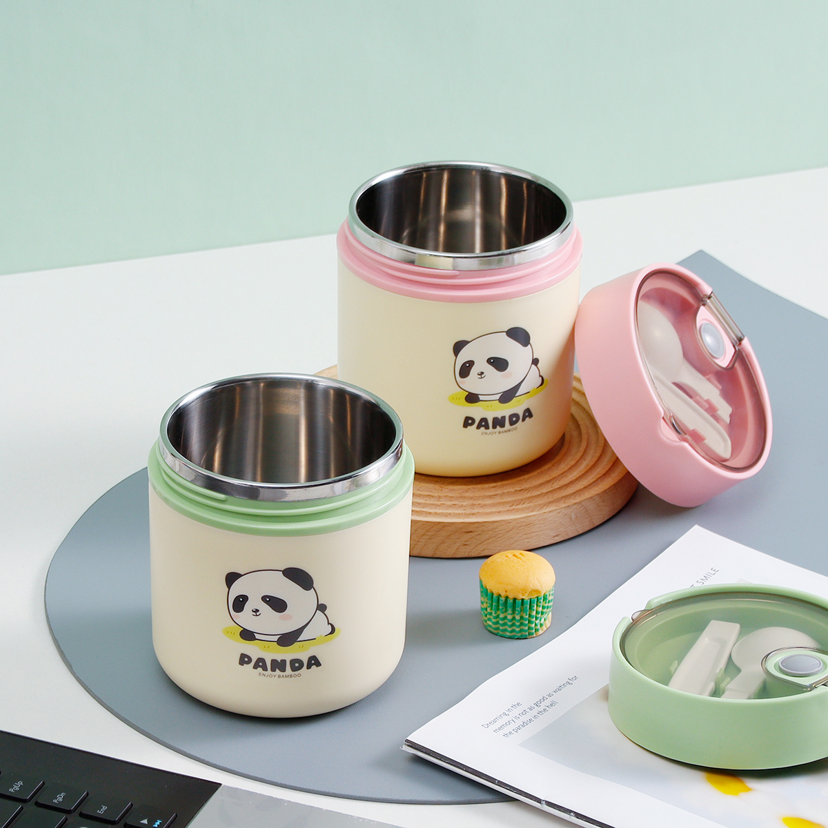 趴趴熊304不銹鋼湯杯530ml [平蓋]