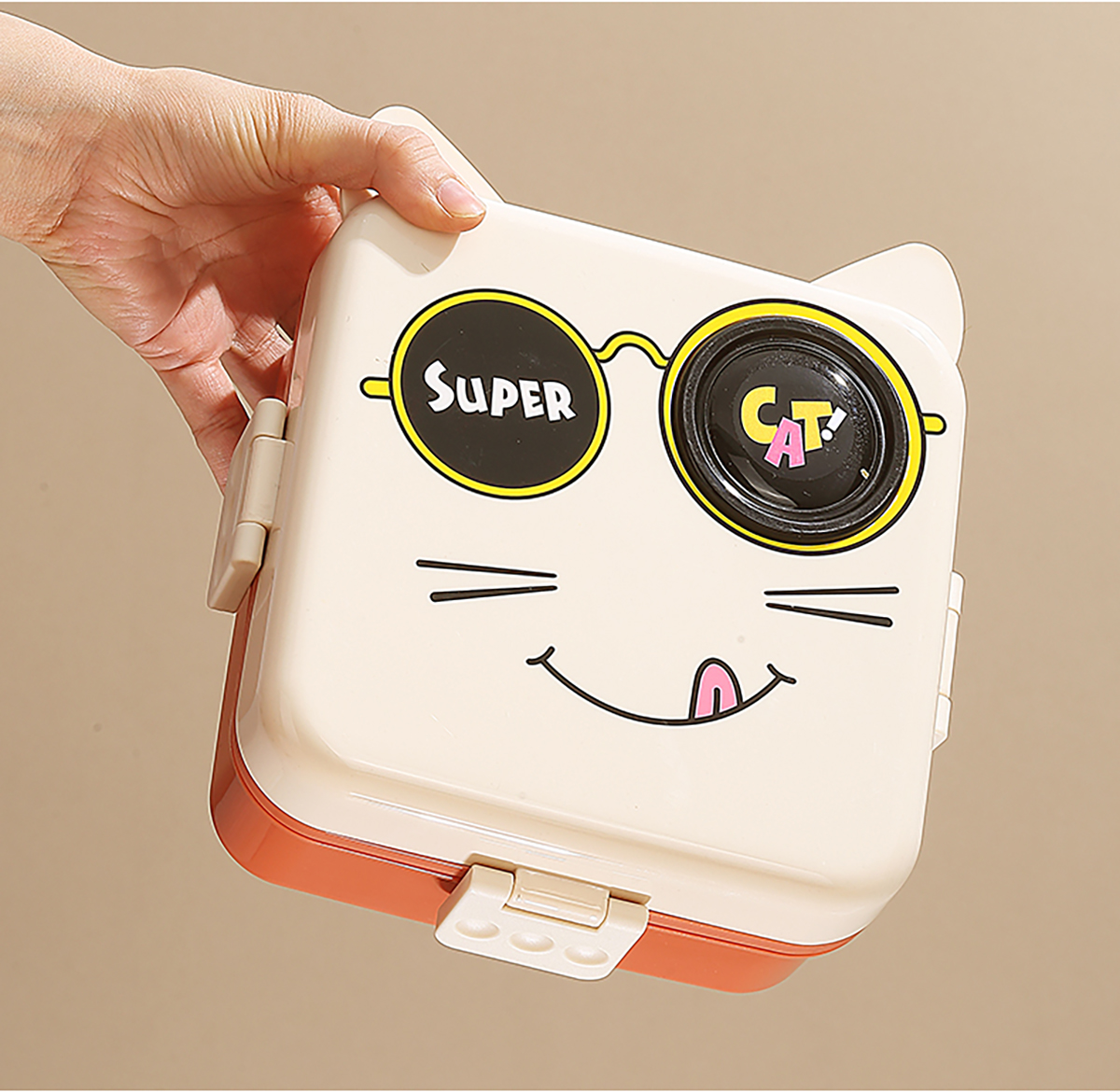 小貓正方形飯盒(塑料)1590ml+70ml