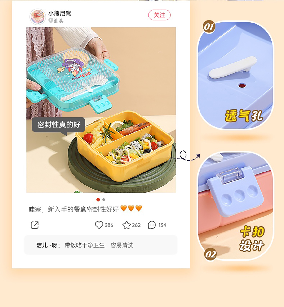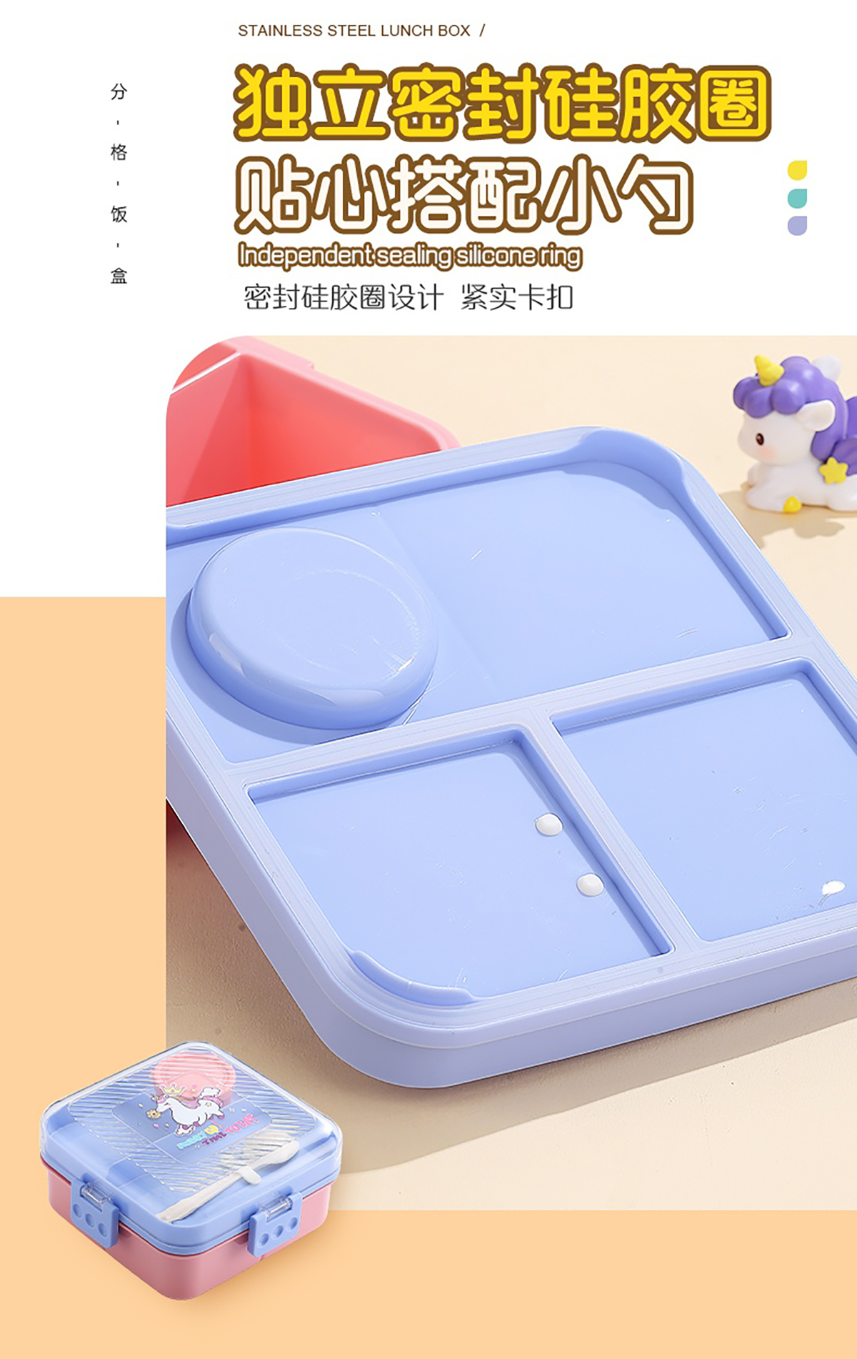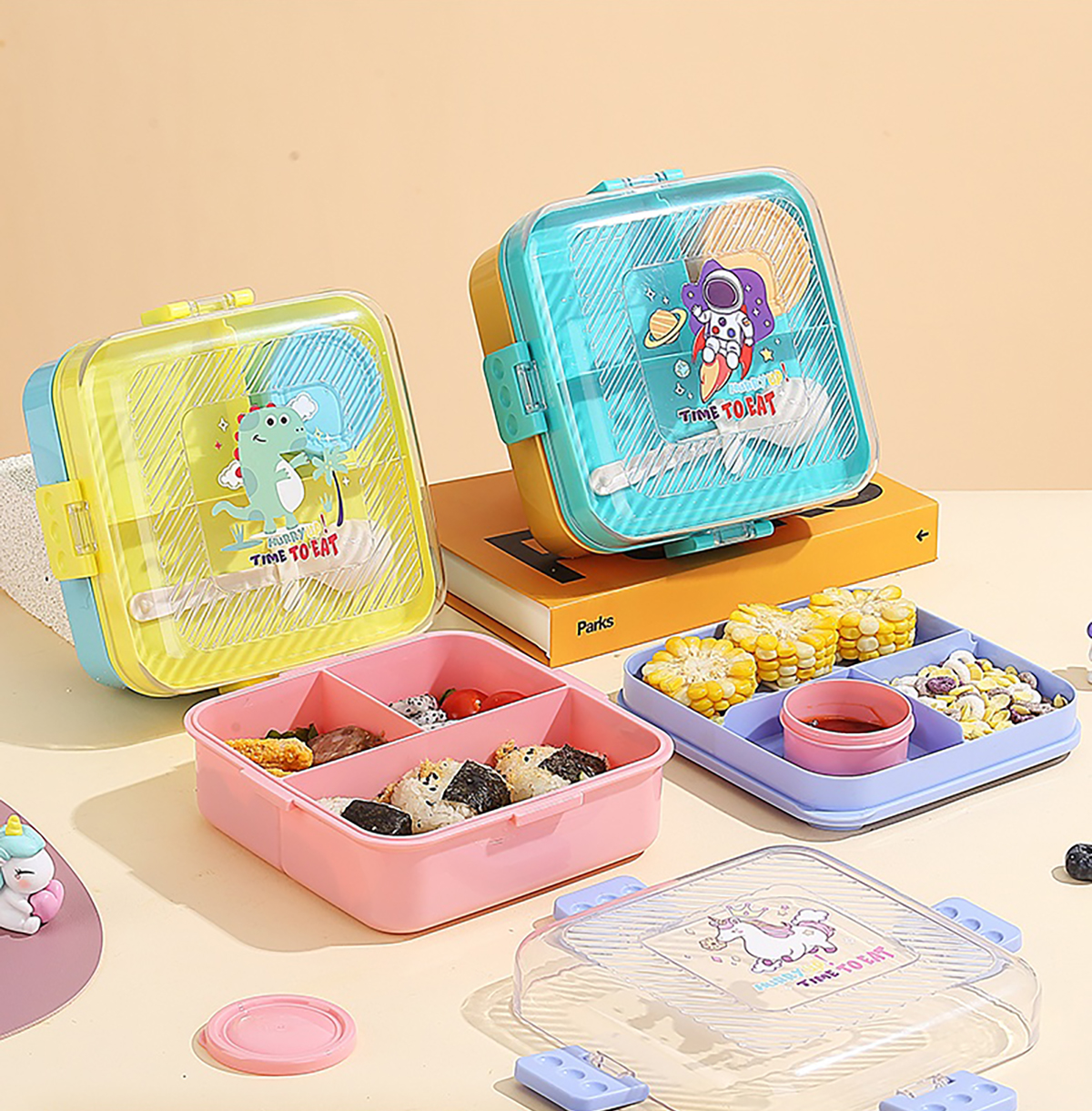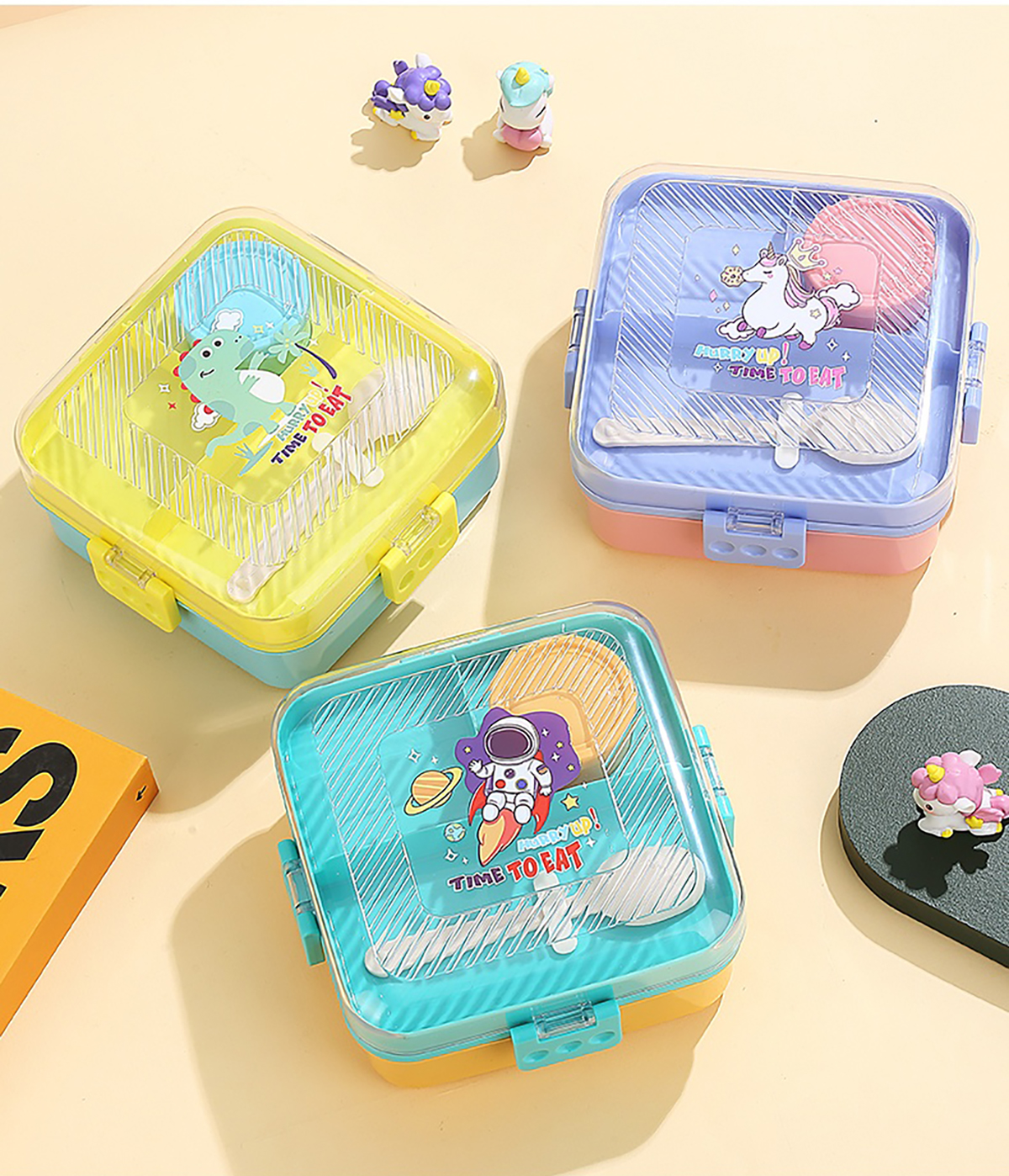 卡通正方形飯盒(塑料)1590ml+70ml