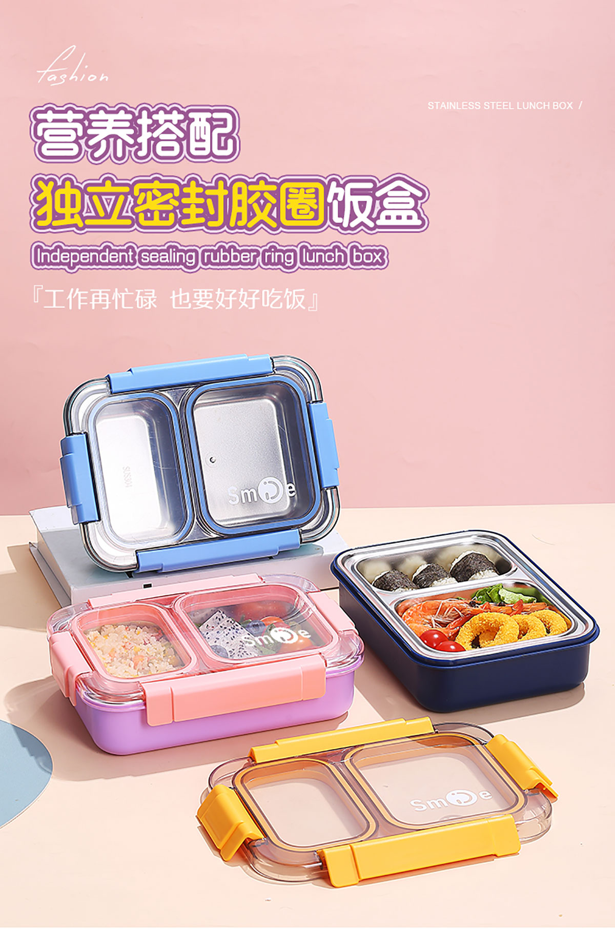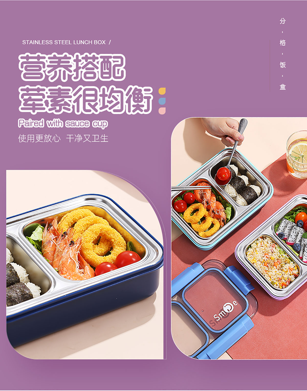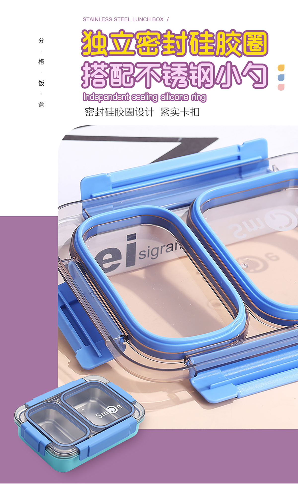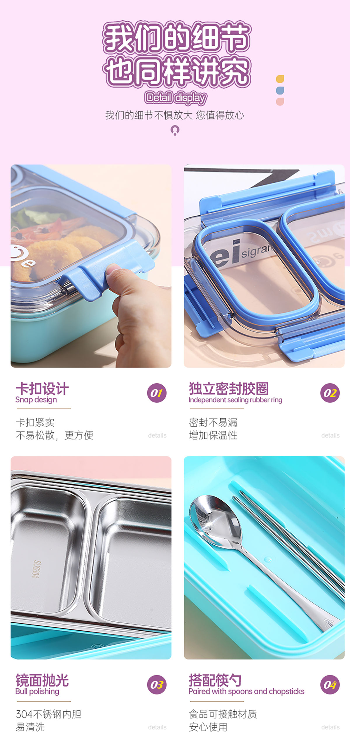 750ml獨(dú)立密封不銹鋼餐盒2格+不銹鋼勺筷