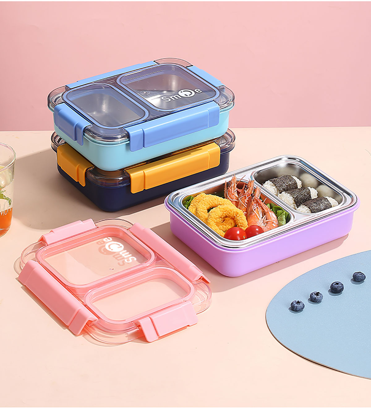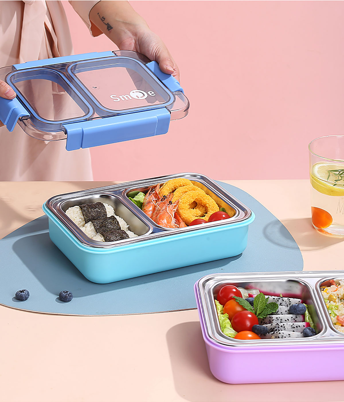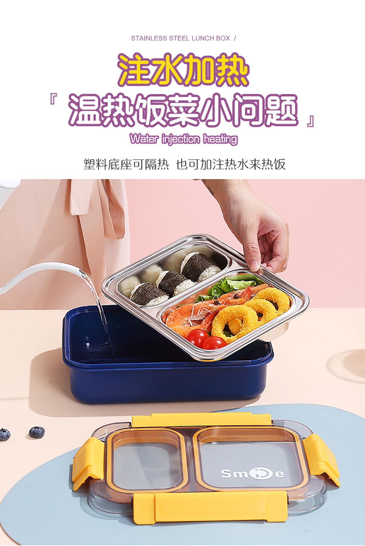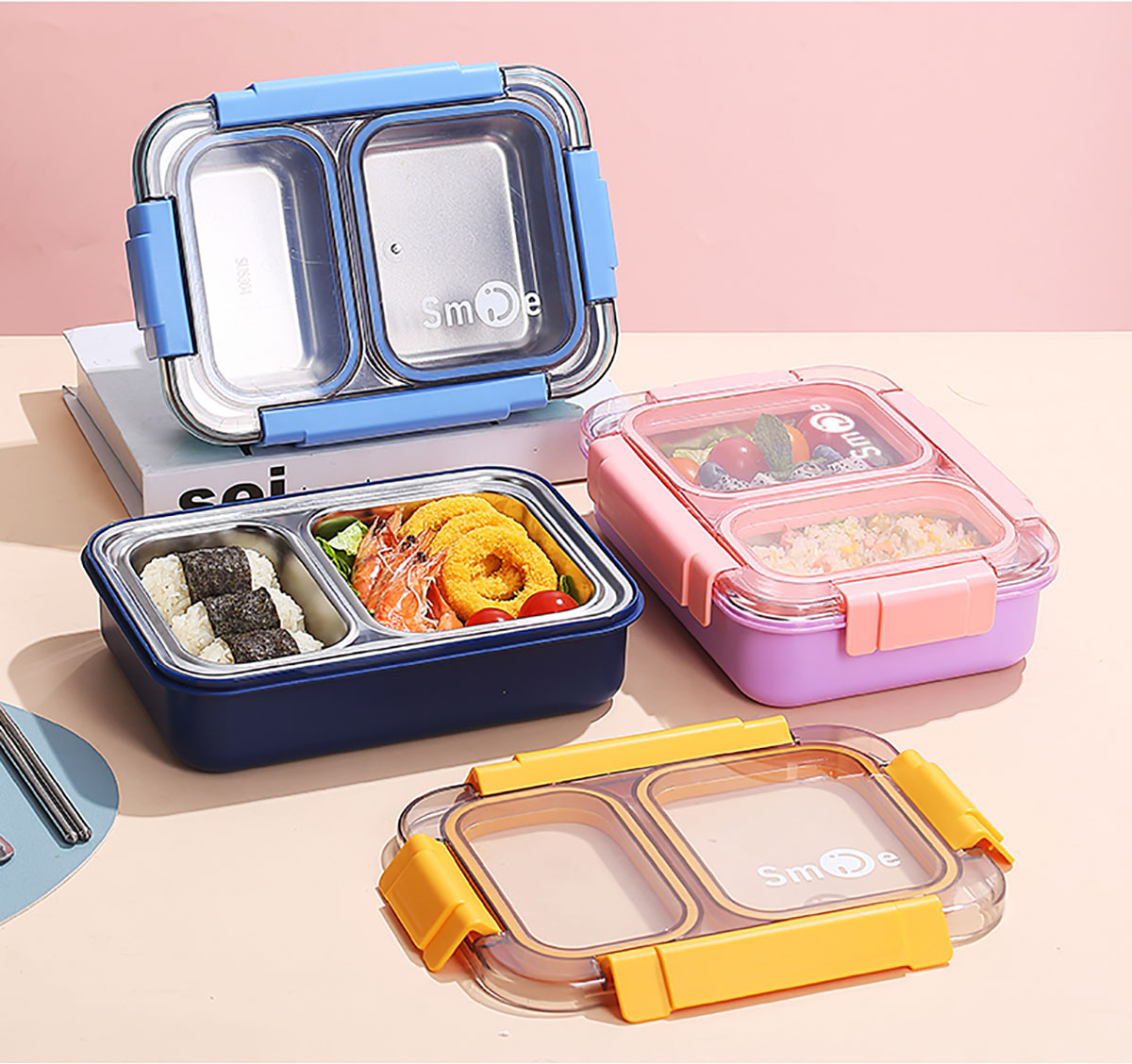 750ml獨(dú)立密封不銹鋼餐盒2格+不銹鋼勺筷