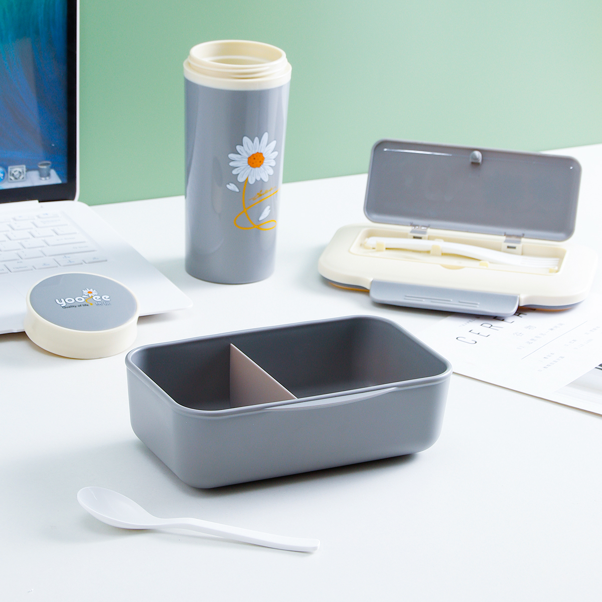 悠悅格瑞二格便當(dāng)盒大號(hào)套裝(950ml+400ml)