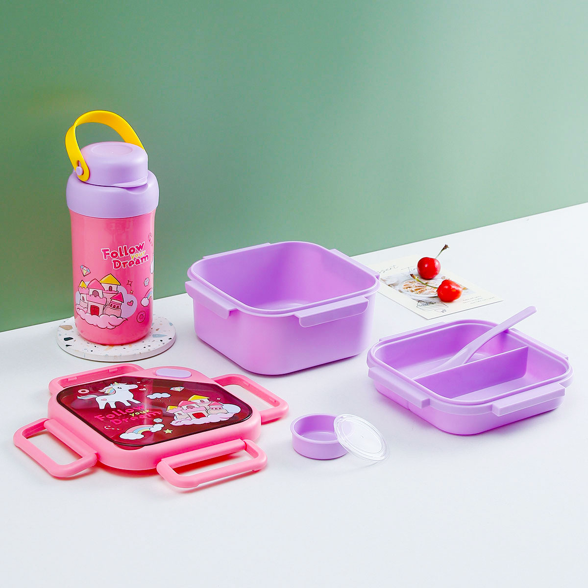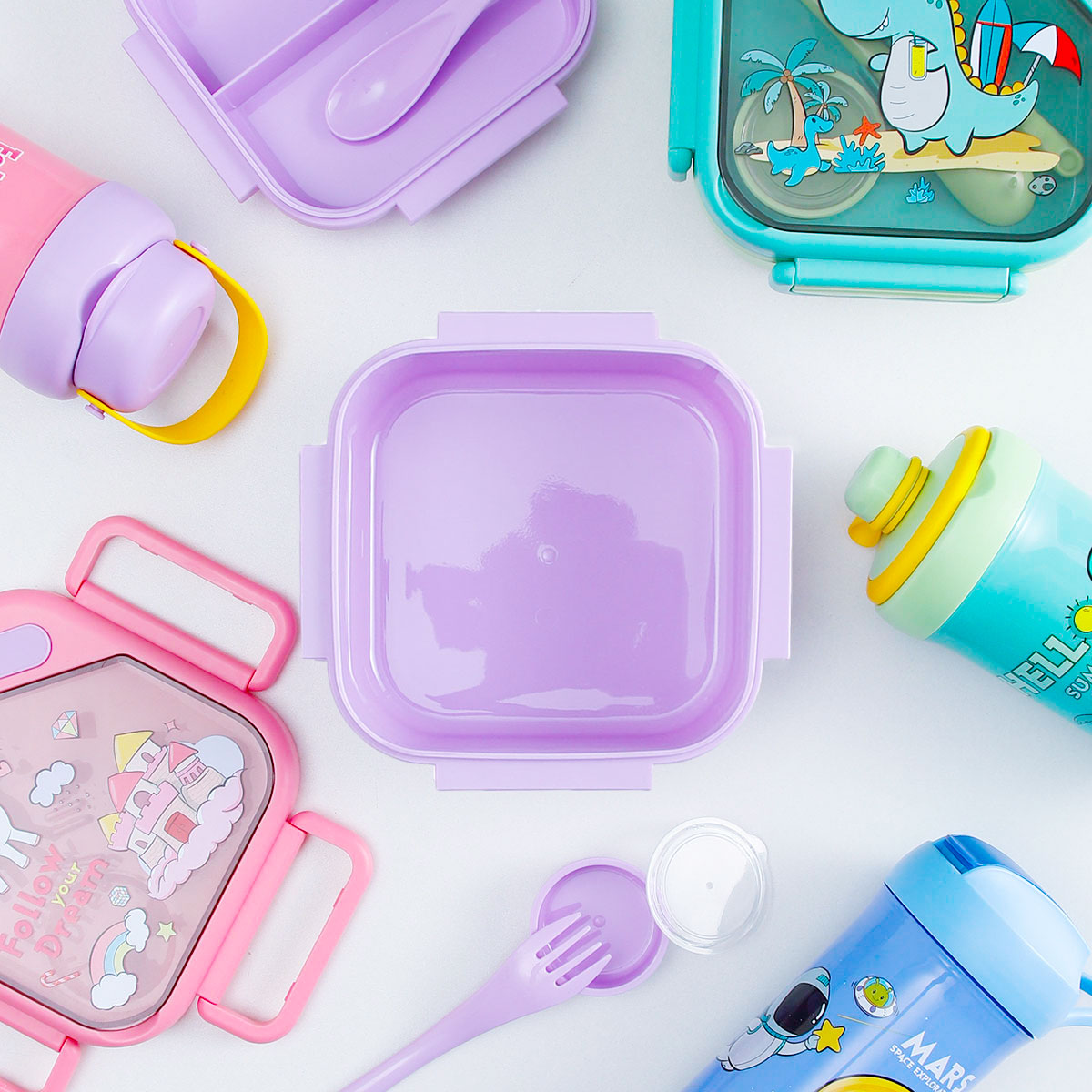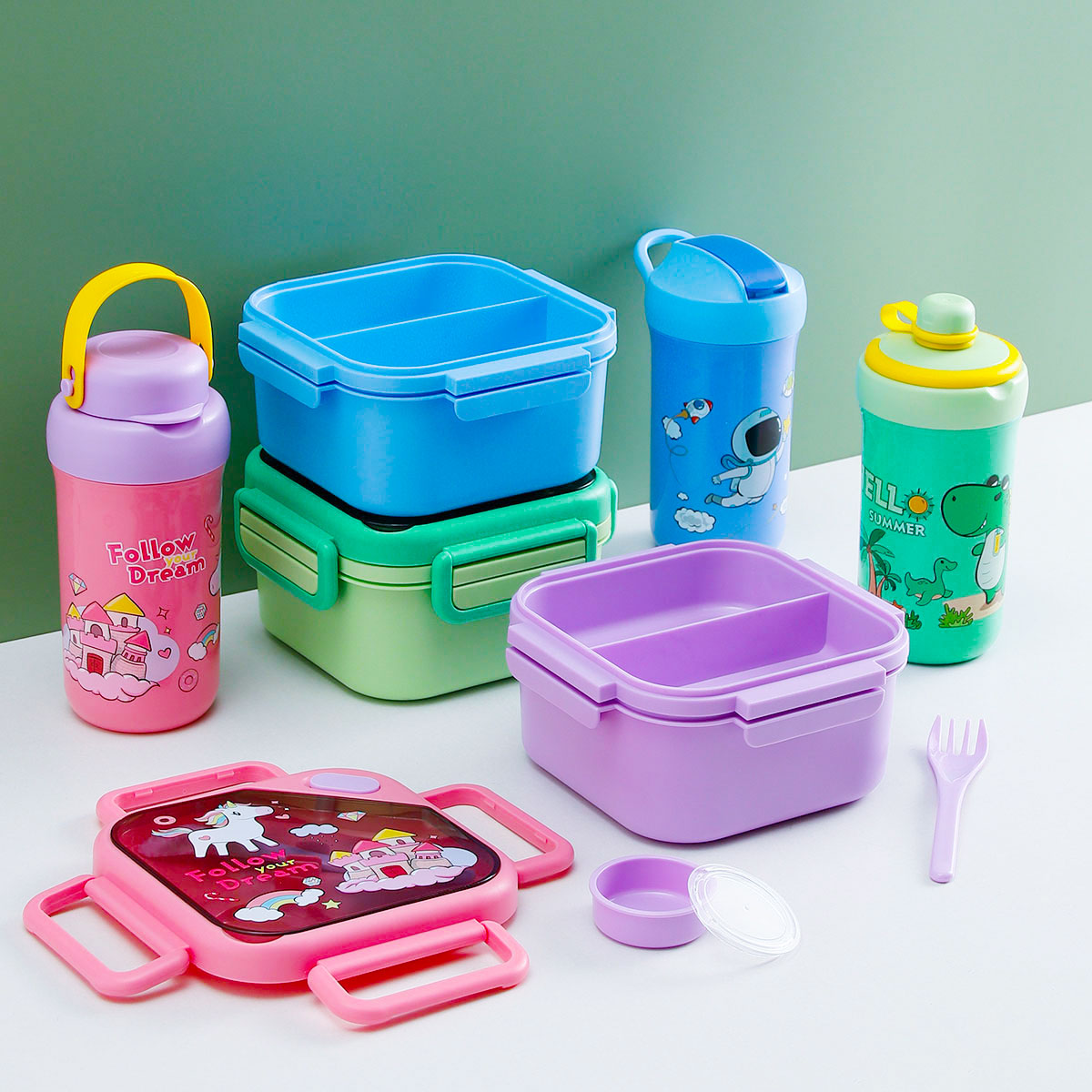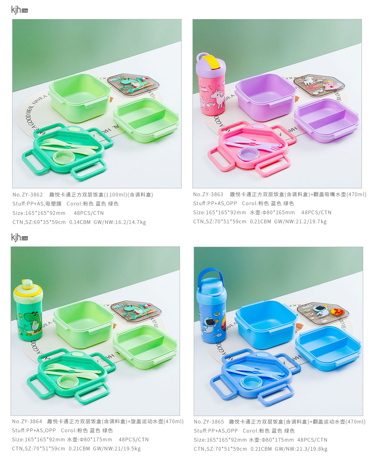 趣悅卡通正方雙層飯盒(含調(diào)料盒)+翻蓋吸嘴/旋蓋運(yùn)動(dòng)/翻蓋運(yùn)動(dòng)水壺