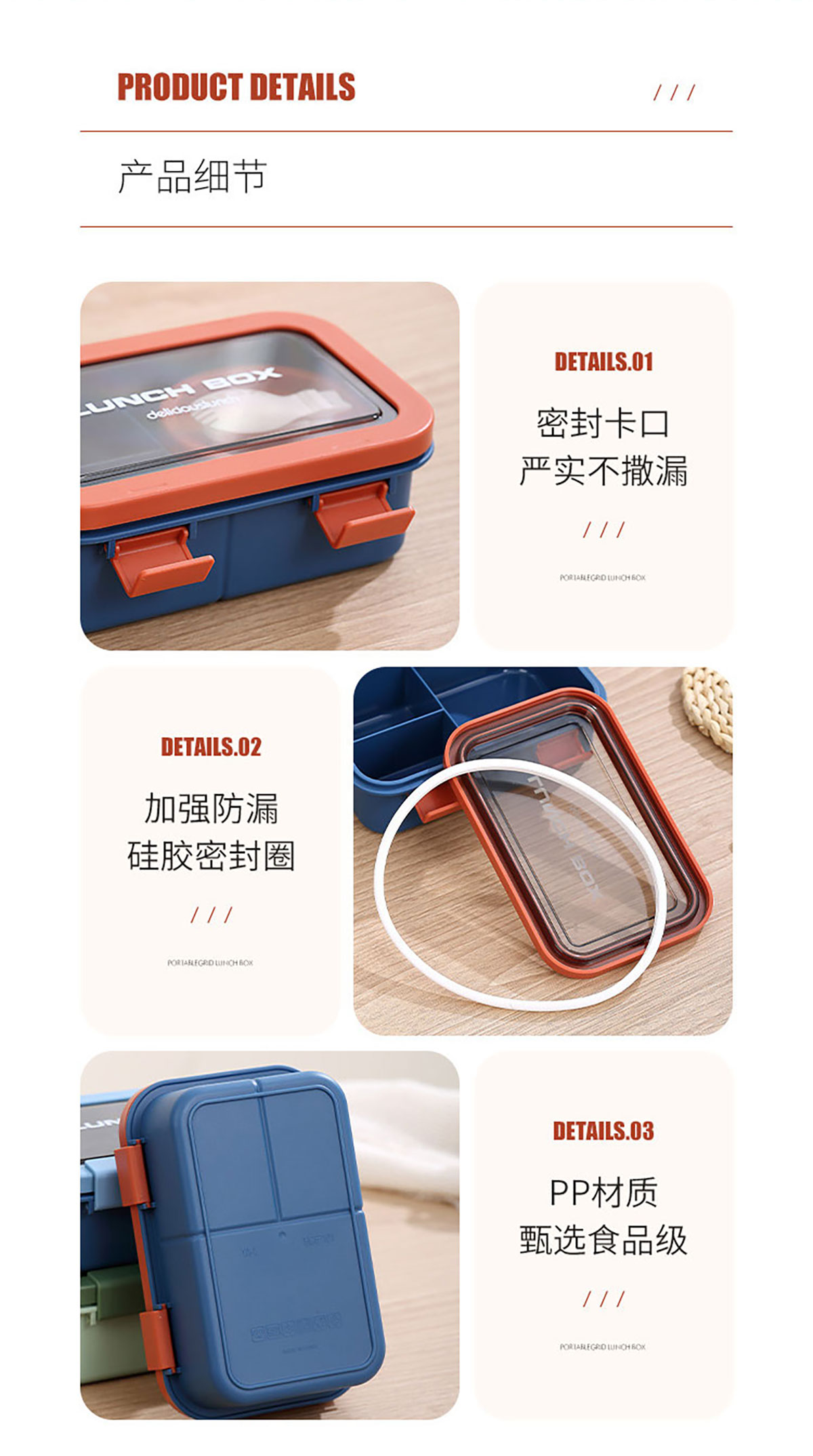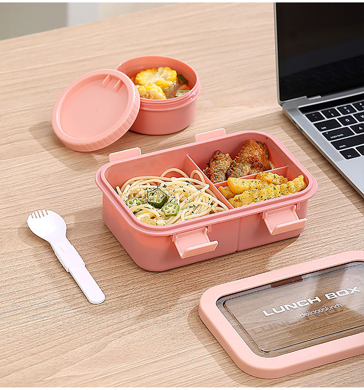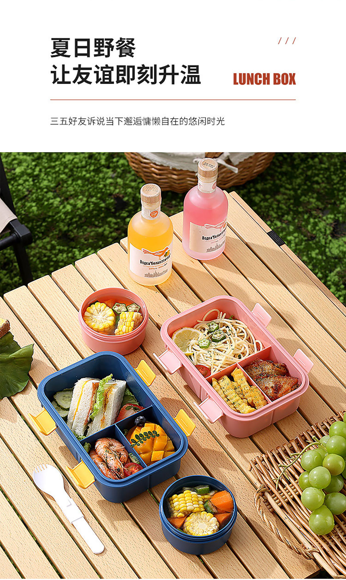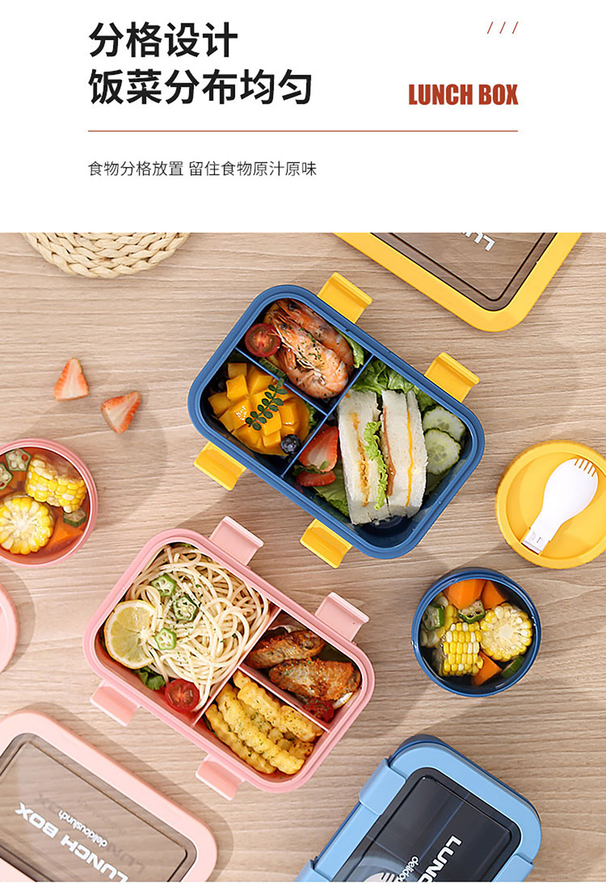 塑料三格分格飯盒1000ml/湯碗250ml