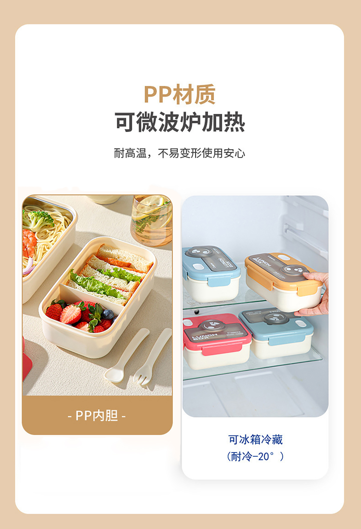 塑料款長(zhǎng)方形/正方形相機(jī)飯盒(配叉+勺)1100ml