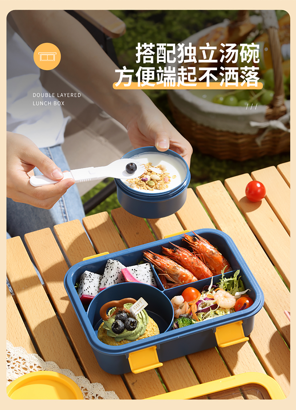 Size: 飯盒:215*160*71mm/1250ml 湯碗:直徑96*高度51mm/250ml