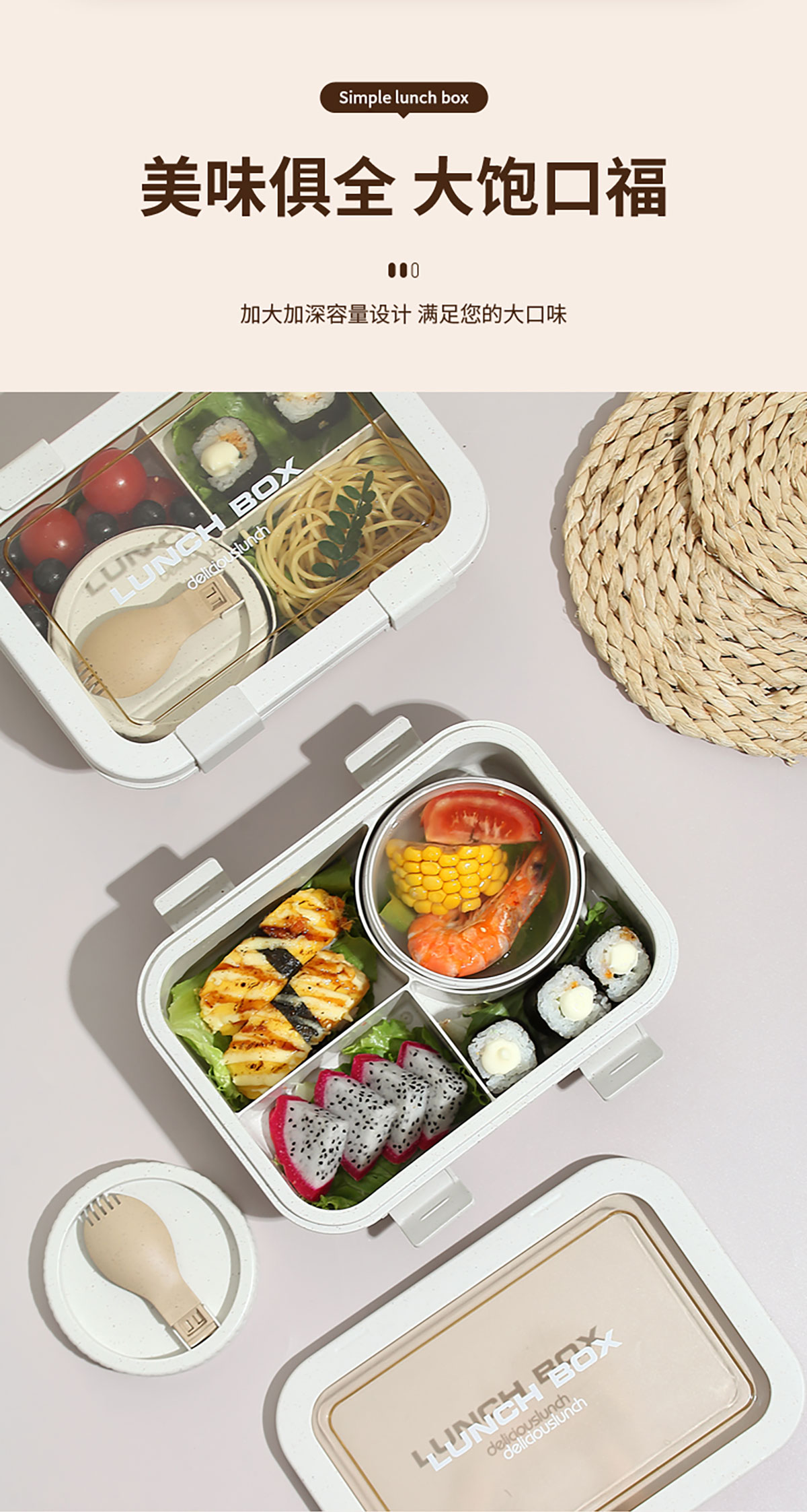 小麥款分格飯盒1250ml/湯碗250ml