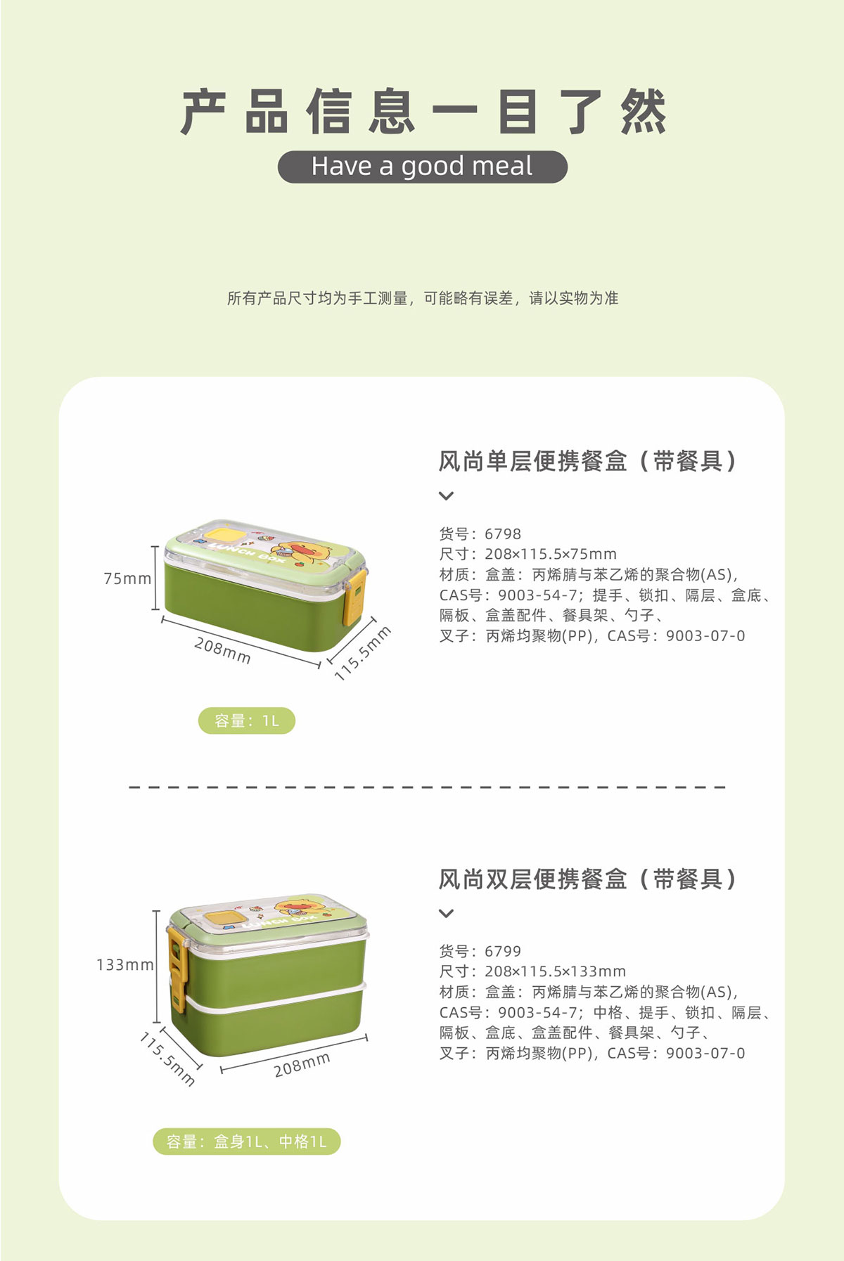 Size: HM-6798(單層):208*116*75mm