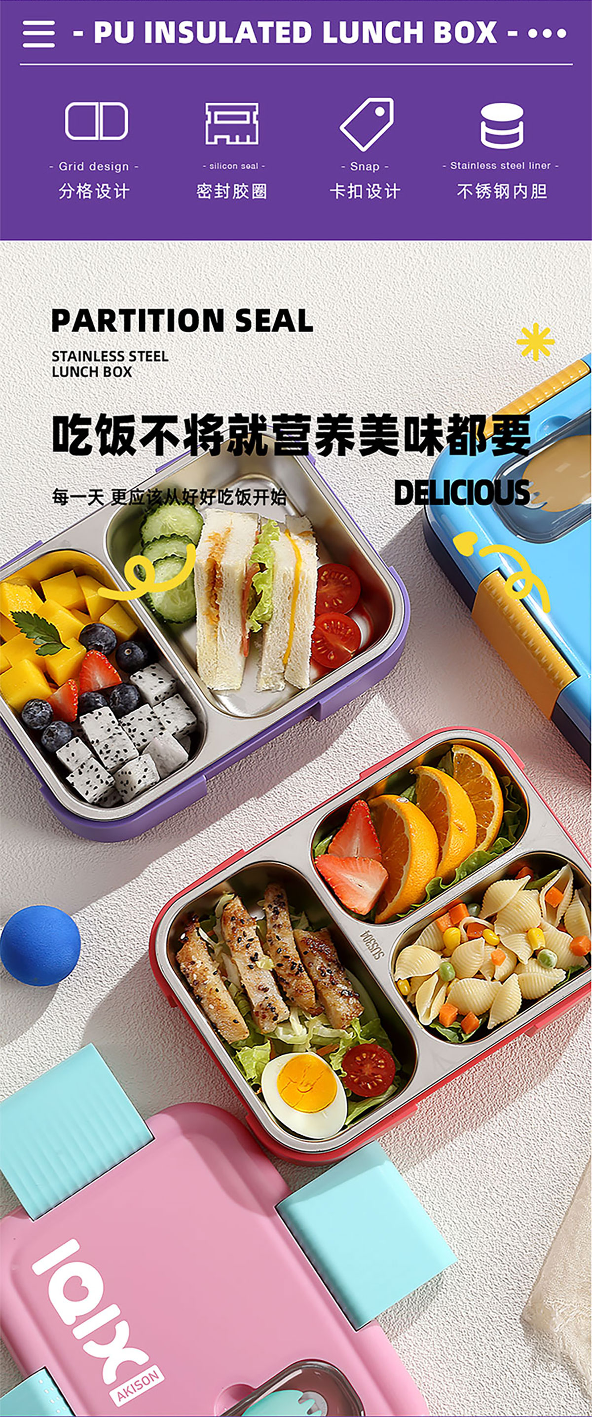 Size: AQX-2666(3格):216*155*60mm/750ml AQX-2667(2格):216*155*60mm/800ml