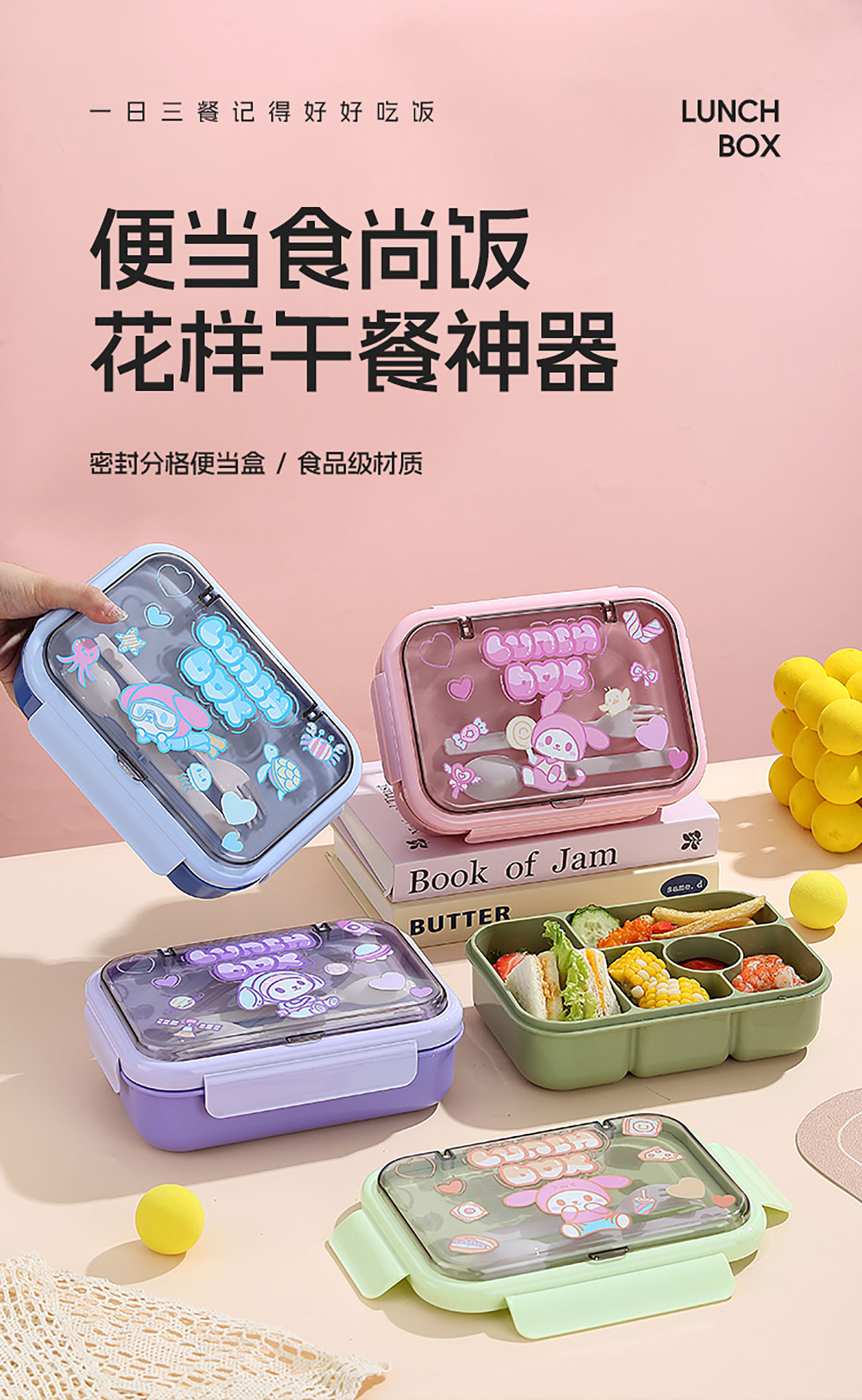 卡通分格飯盒(三分格/四分格/五分格)