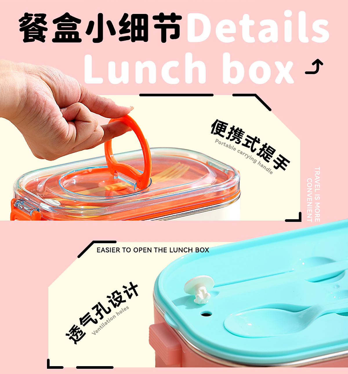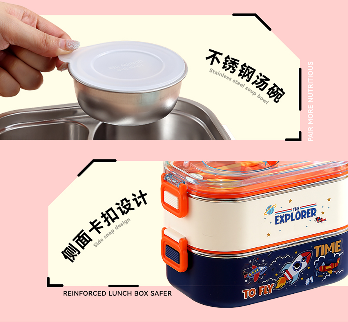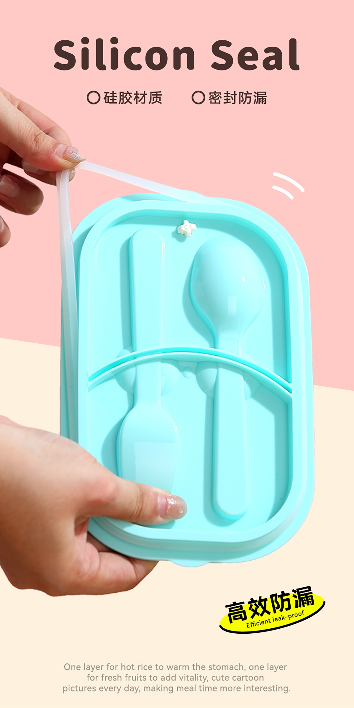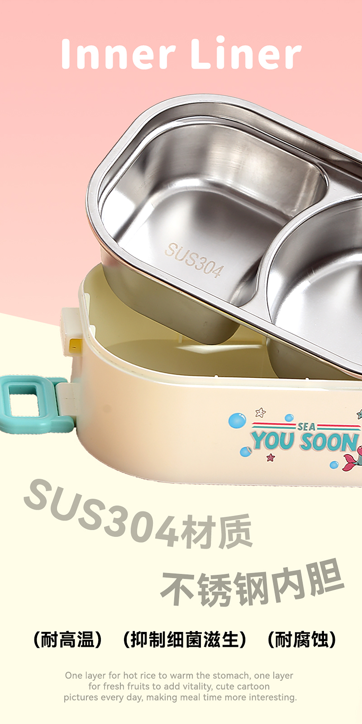 卡通手提雙層不銹鋼餐盒(單格900ml+2格850ml+不銹鋼碗150ml+PP叉勺)