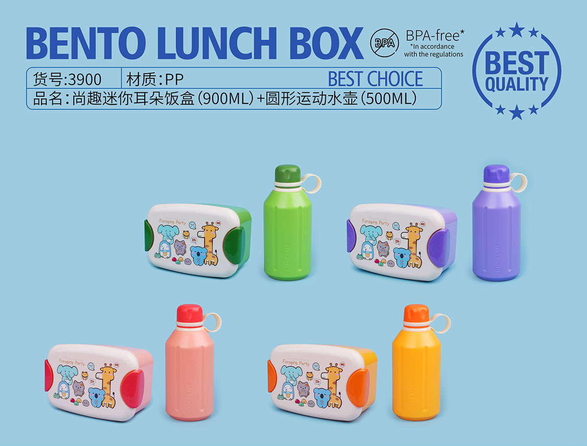 尚趣迷你耳朵飯盒(900ml)+圓形運(yùn)動(dòng)水壺(500ml)
