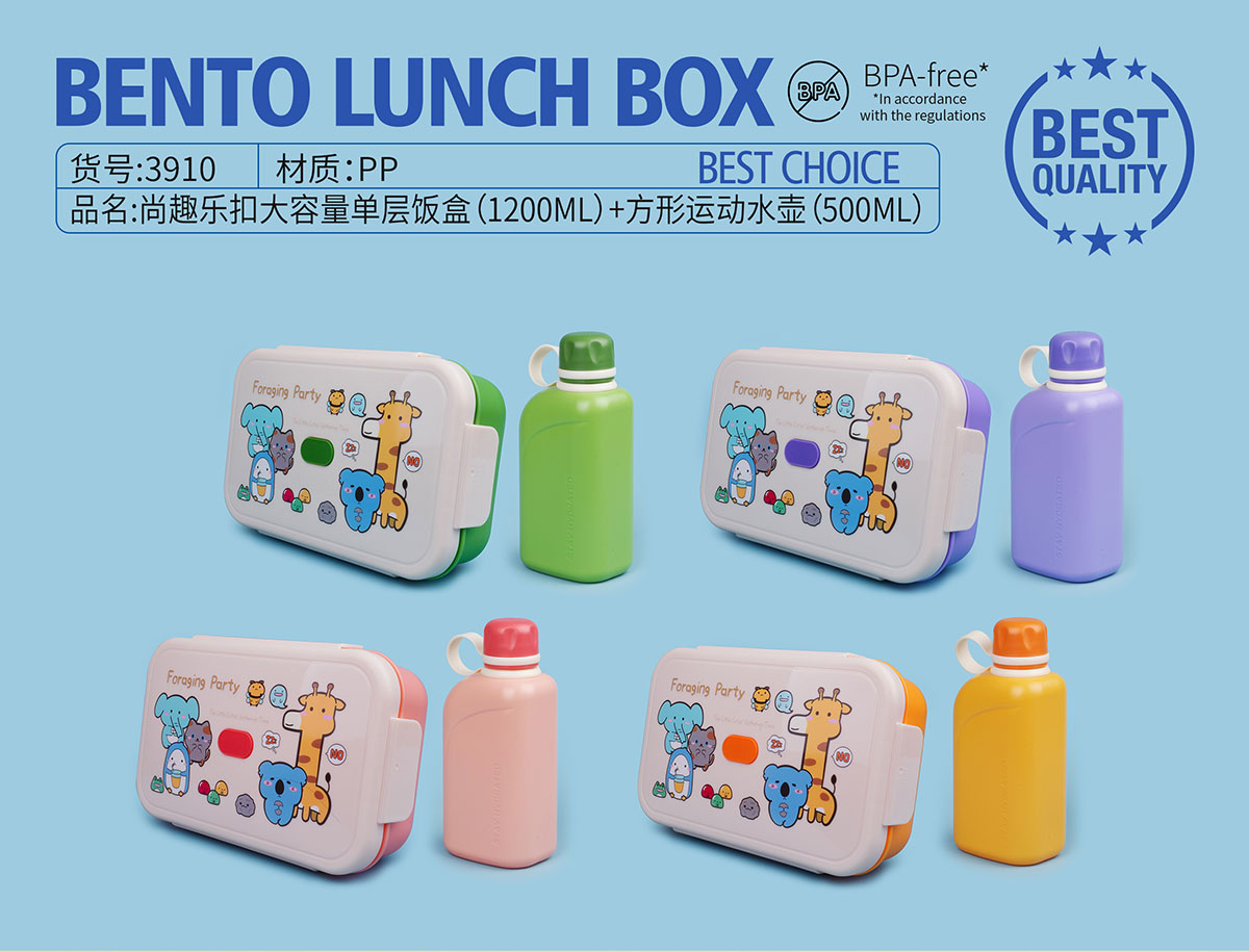 尚趣樂扣大容量單層飯盒(1200ml)+方形運動水壺(500ml)