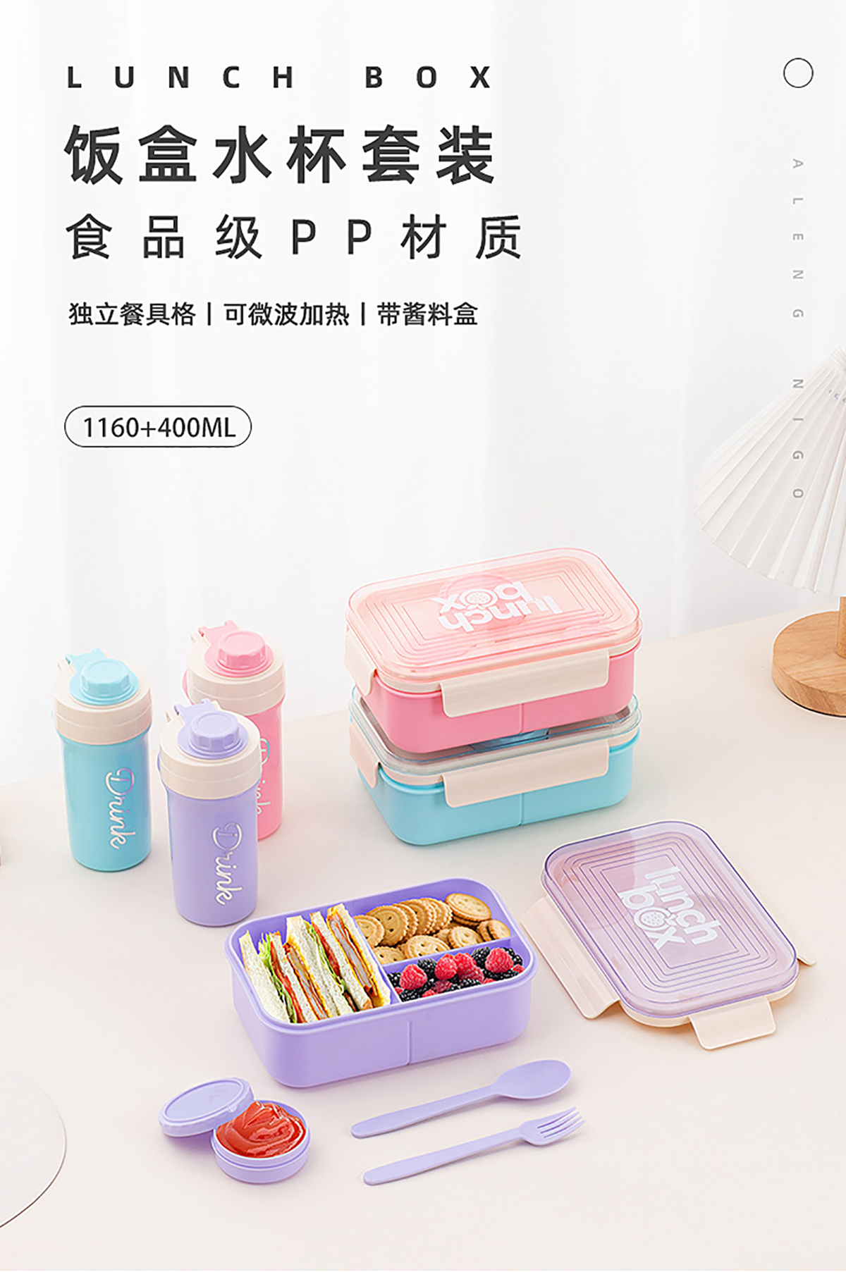 Size: 飯盒:214*143*81mm/1100ml 水壺:φ82*61*163mm/400ml