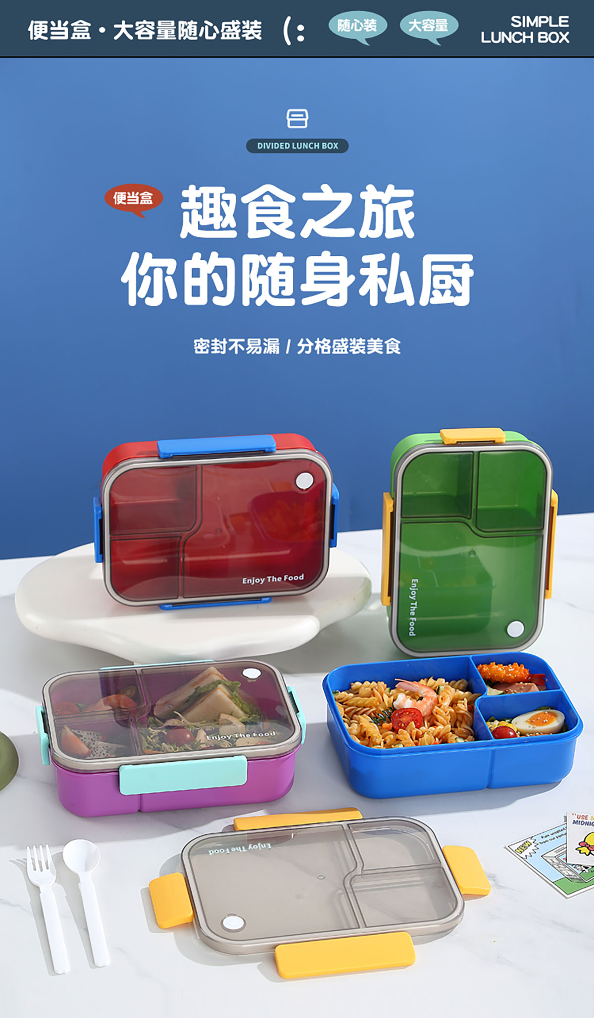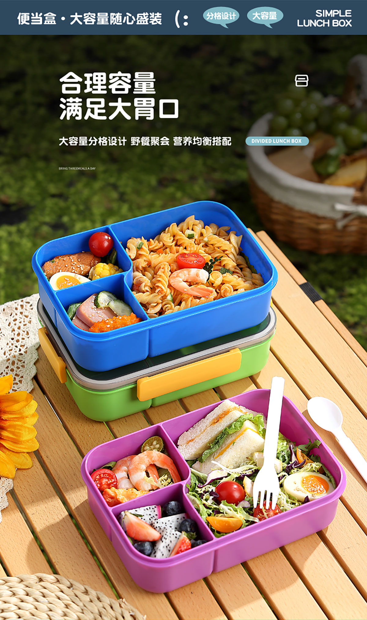 簡(jiǎn)約透明分格飯盒1450ml