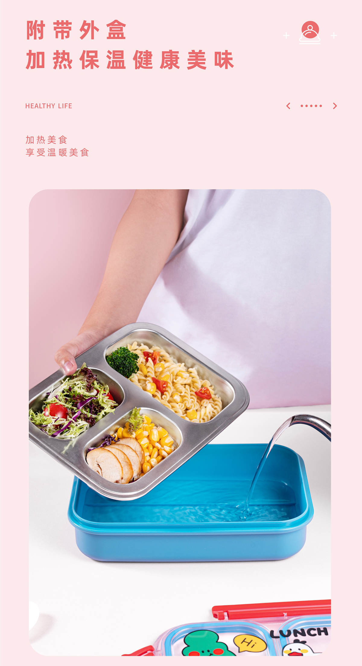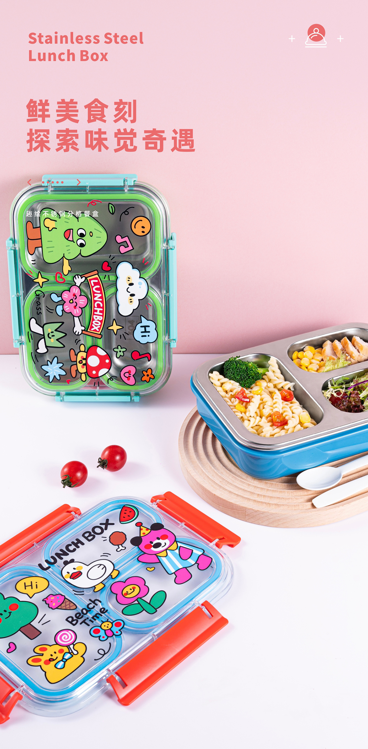 趣繪不銹鋼分格餐盒(帶餐具)